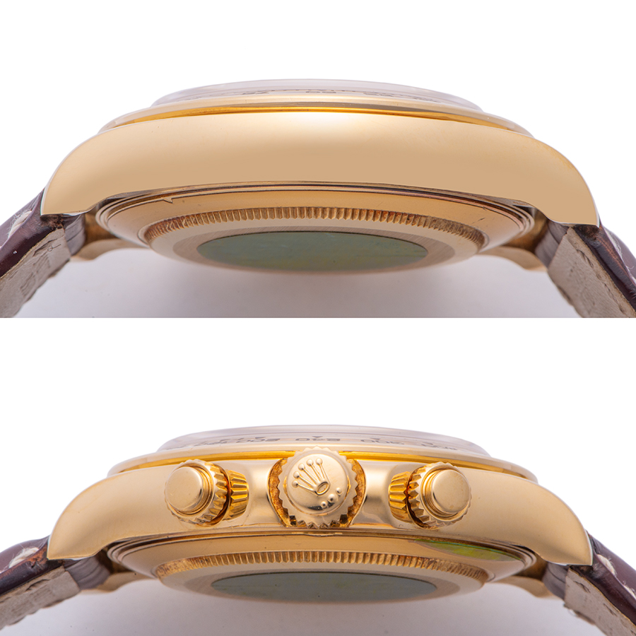 | 商品説明 | ☆ロレックス自社製自動巻きクロノグラフムーブメント・4130を搭載した、金無垢のデイトナが入荷しました。 ※外装仕上げ済みで、特筆すべきダメージはなく大変綺麗な状態です。 純正ベルトの使用感も殆どありません。 |