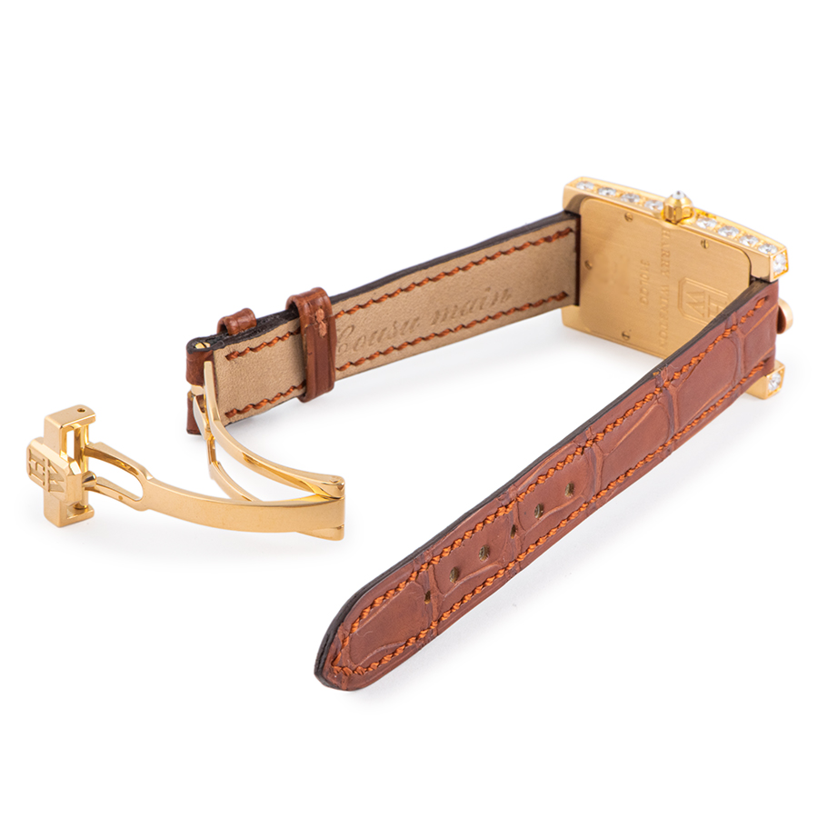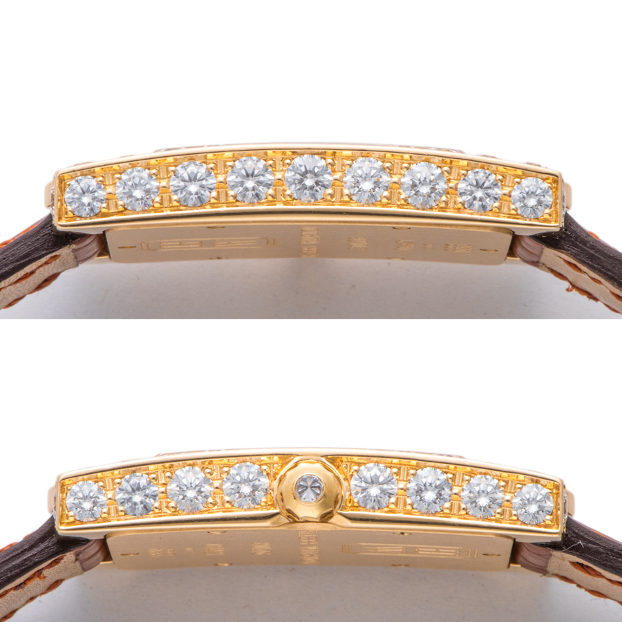 | 商品説明 | ☆ブラックのインデックスがホワイト マザー・オブ・パールのダイヤルをエレガントに飾り、シックでタイムレスな印象を醸し出します。 特徴的なレクタンギュラーケースにイエローサファイアとダイヤモンドをあしらい、フェミニンな輝きを添えています。 ※使用に伴う小傷がありますが目立つような大きな傷はなく綺麗な状態です。 新品純正革ベルトに交換済みです。 |