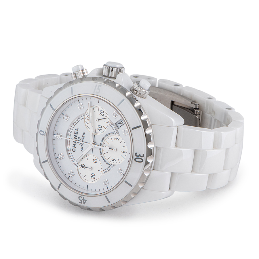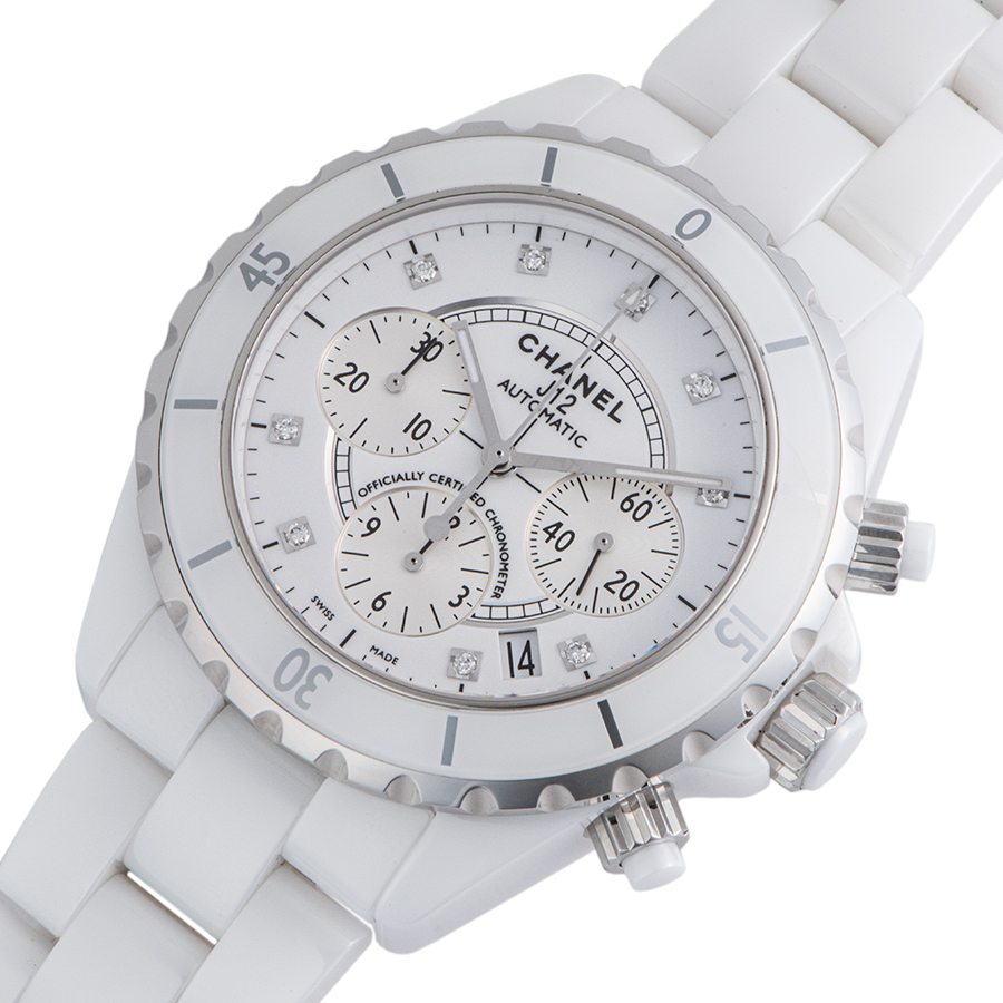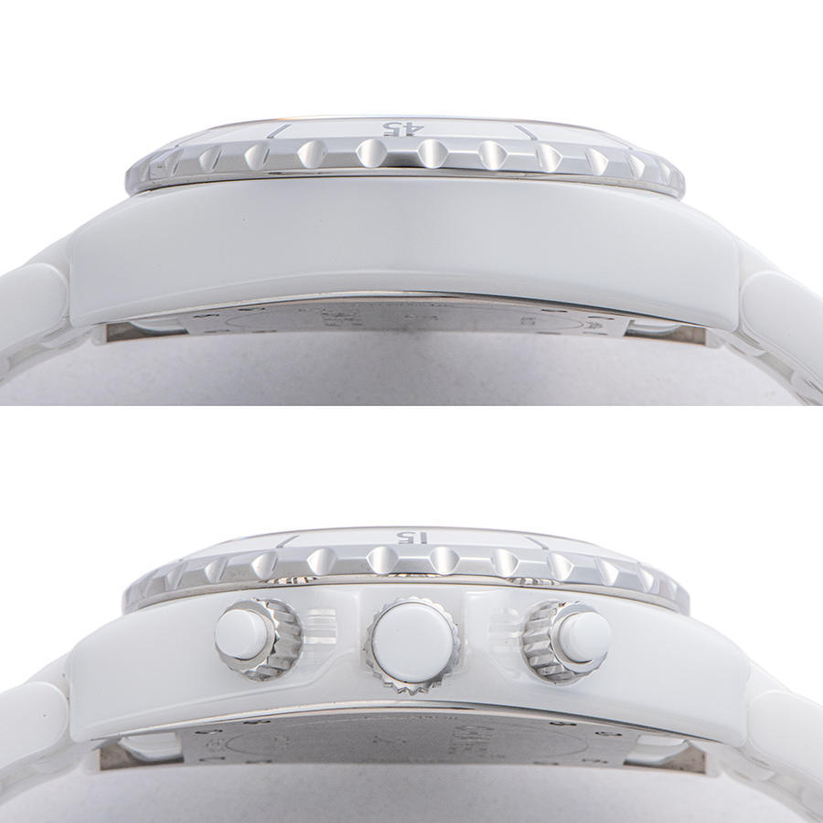 | 商品説明 | ☆ダイヤルに9個のダイヤモンドをセッティングしたJ12のクロノグラフモデルが入荷しました。 長期使用しても、変質しない素材である、ハイテクセラミック素材を採用した人気モデルです。 ※ケース本体、ブレス共に特筆すべきダメージなどなく大変綺麗な状態です。 裏蓋にバックルによる擦り傷があります。 |