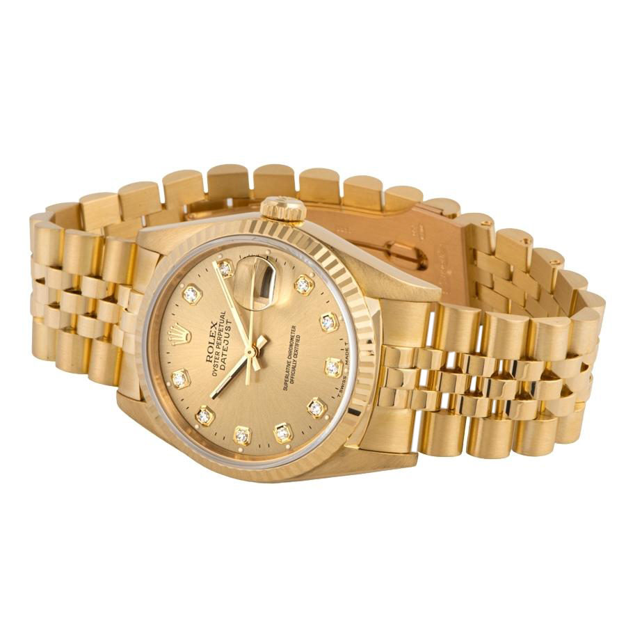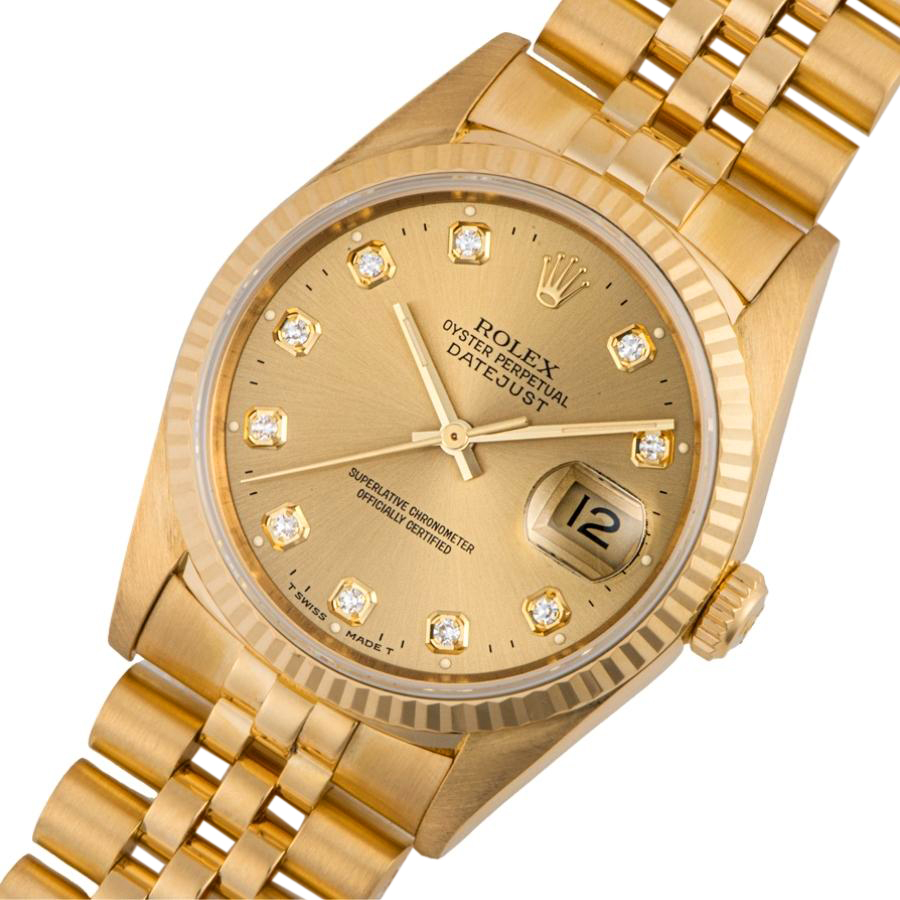 | 商品説明 | ☆K18YG無垢ケースに10Pのダイヤがついた豪華なデイトジャストが入荷致しました。 ※外装仕上げ済みで目立つ大きな傷などなく大変綺麗な状態です。 |