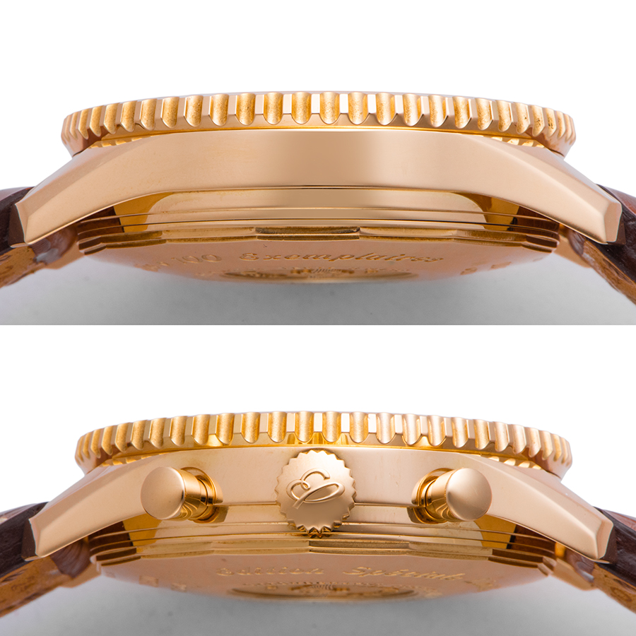 | 商品説明 | ☆ナビタイマーのピングゴールドモデルが入荷いたしました。 ケースサイズも46mmと存在感のある大きさとブライトリングならではのスタイルを際立たせています。 ※外装仕上げ済みで、目立つ大きな傷などなく大変綺麗な状態です。 純正ベルトに使用に伴うヨレがありますが、大きな劣化や汚れ等はなく使用できる程度です。 |