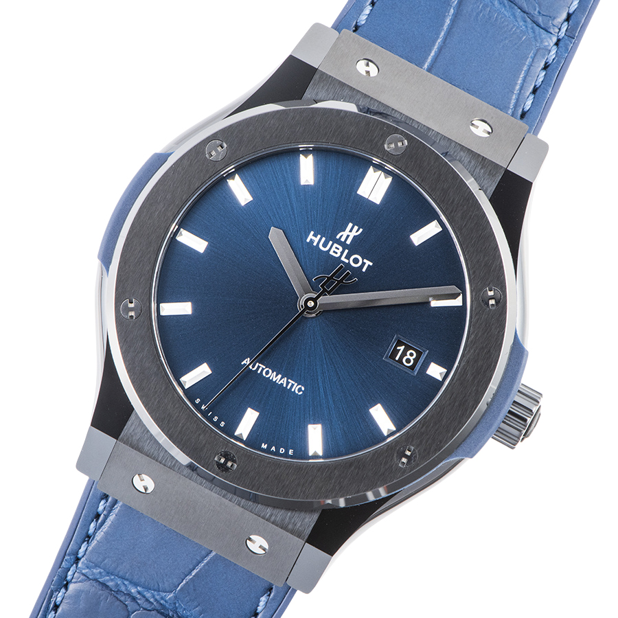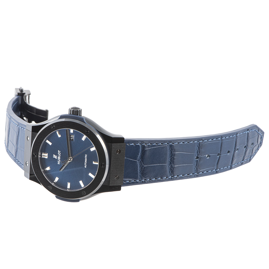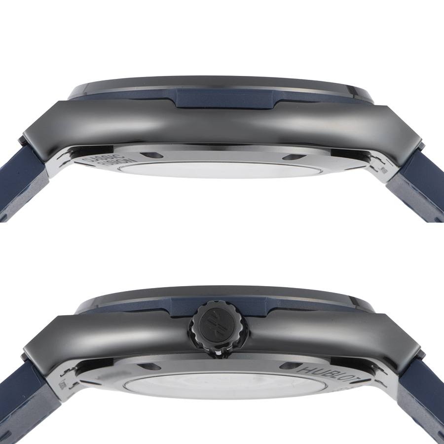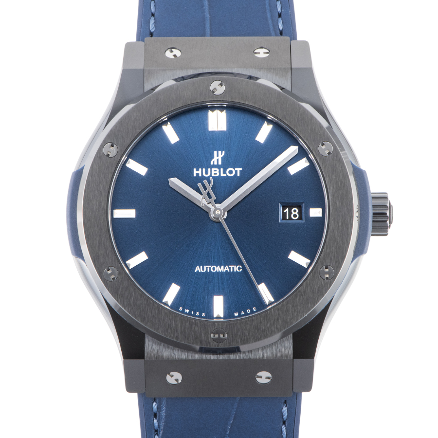| 商品説明 | ☆バーゼルワールド2017新作で発表されたモデルで、光沢有るポリッシュ仕上げとマットなサテン仕上げが施されたブラックカラーのセラミック製ケースに、サンレイ状のサテン仕上げされたブルーイヤルに合わせてブルーカラーのアリゲーターレザーが組み合わされています。 自社製の自動巻きキャリバー「HUB1110」を搭載し、シースルーバックより動作が眺められます。 |