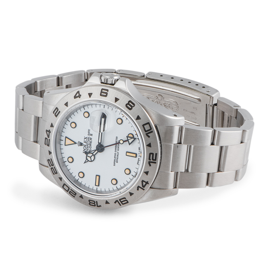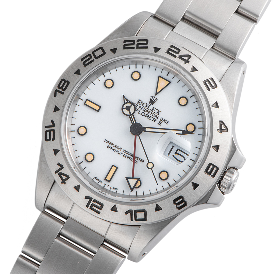| 商品説明 | ☆セミヴィンテージロレックスのエクスプローラーIIが入荷しました。 インデックスのヤケ具合がトウモロコシの穀粒のような色合いで、通称「Chicchi di Mais」と言われております。 こちらのこの個体は大変色味の濃い部類で市場でも流通量の少ない個体になります。 針、ダイアル共にトリチウム、シングルバックルでヴィンテージの雰囲気も楽しめます。 ※外装仕上げ済みで、ケース・ブレス共に目立つ大きな傷などなく綺麗な状態です。 文字盤が経年によりスパイダーダイアルのような劣化が全体的に見受けられます。 分針の夜光にひび割れが見受けれます。 |