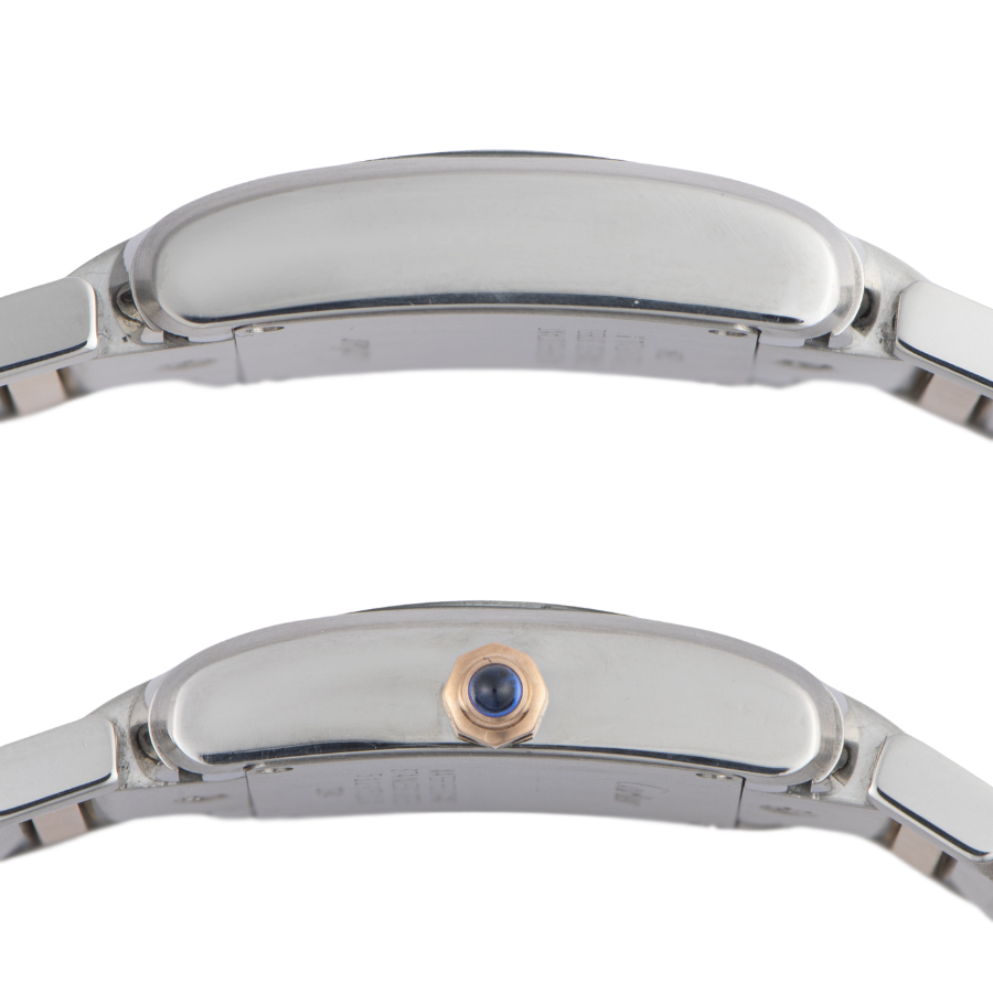| 商品説明 | ☆年齢やコーディネイトを選ばず、どんな時でも気軽に使うことができるタンクフランセーズから文字盤がピンクシェルのモデルになります。 リューズのスピネルの色も合わせられていて、女性らしさにさらに磨きをかけています。 ※研磨仕上げ済みで目立つ大きな傷などなく大変綺麗な状態です。 |