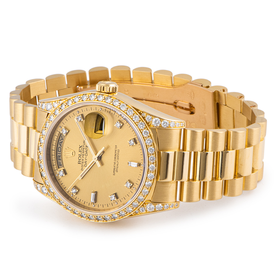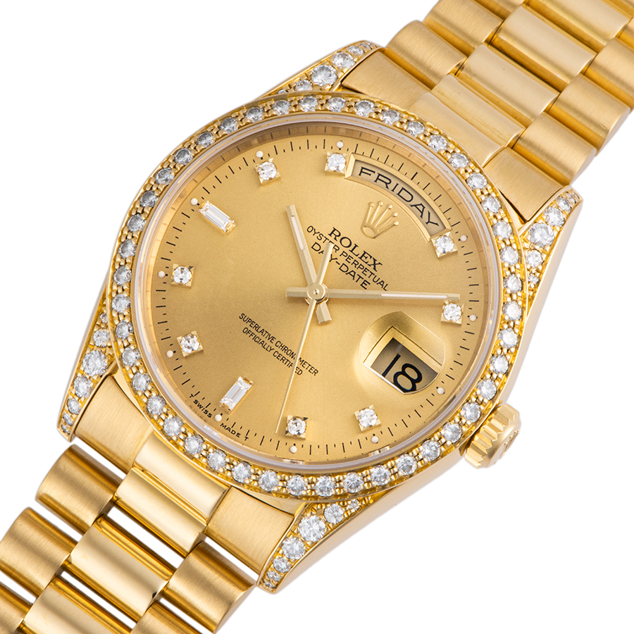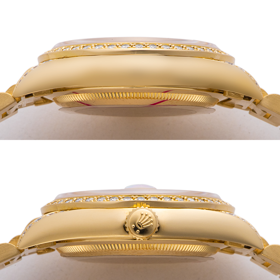 | 商品説明 | ☆K18YG無垢モデルでずっしりとした重量感のある、ロレックス最高峰のドレス系モデルです。 綺麗なシャンパンダイアルに8Pダイヤ、2Pバケットダイヤをセッティングした華やかなモデルです。 ベゼル・ラグ・ダイヤルとふんだんに使われたダイヤモンドも魅力です。 ※外装仕上げ済みで、目立つ大きな傷などなく大変綺麗な状態です。 |