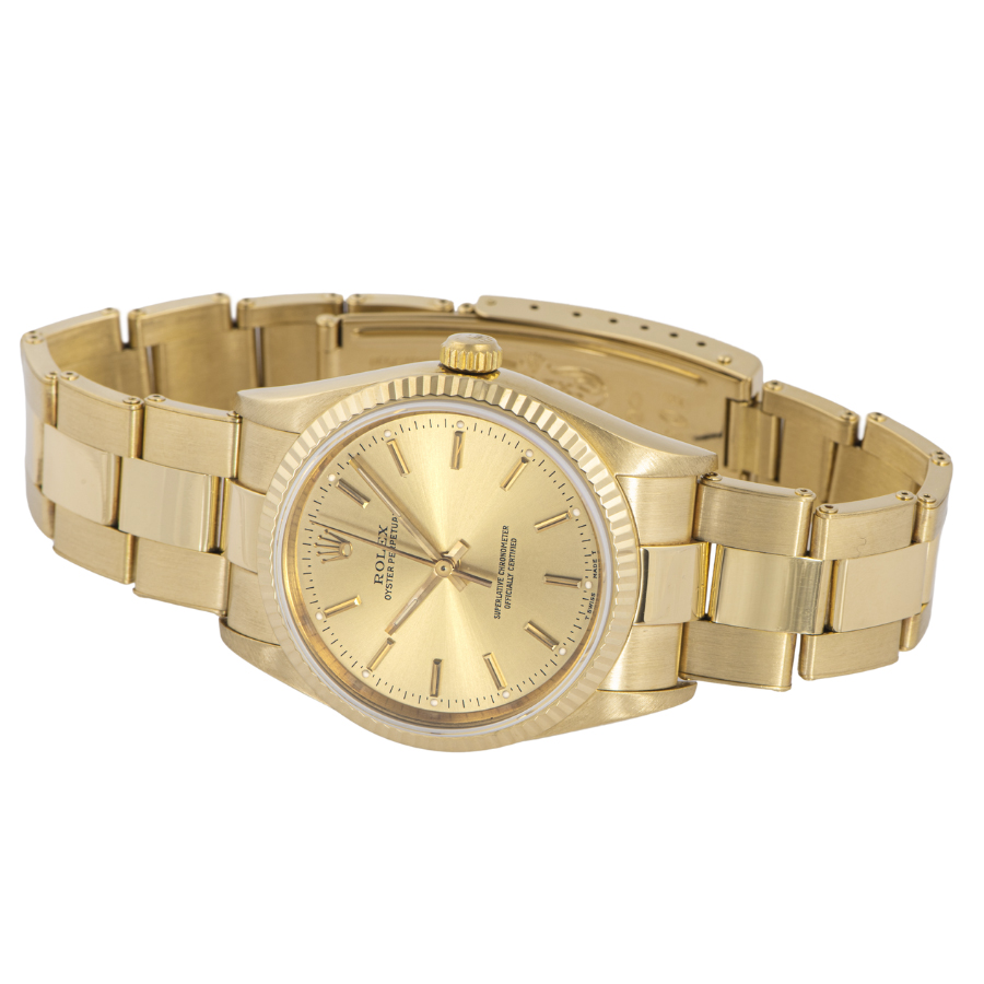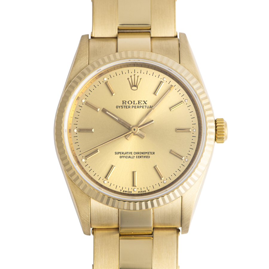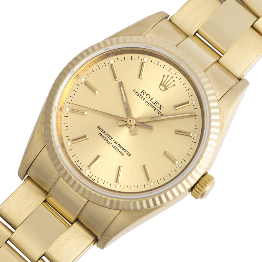 | 商品説明 | ☆オイスターパーペチュアルでは珍しいK18YG無垢モデルです。リベットブレスを採用していてアンティークらしさもあります。 ※外装仕上げ済みで目立つ大きな傷などなく大変綺麗な状態です。 ブレスにほんの小さな小傷が残りますが、年代を考慮していただければコンディションに大きな問題は御座いません。 |