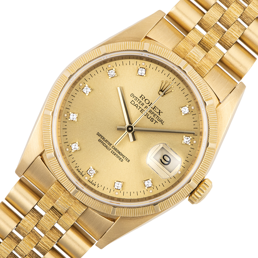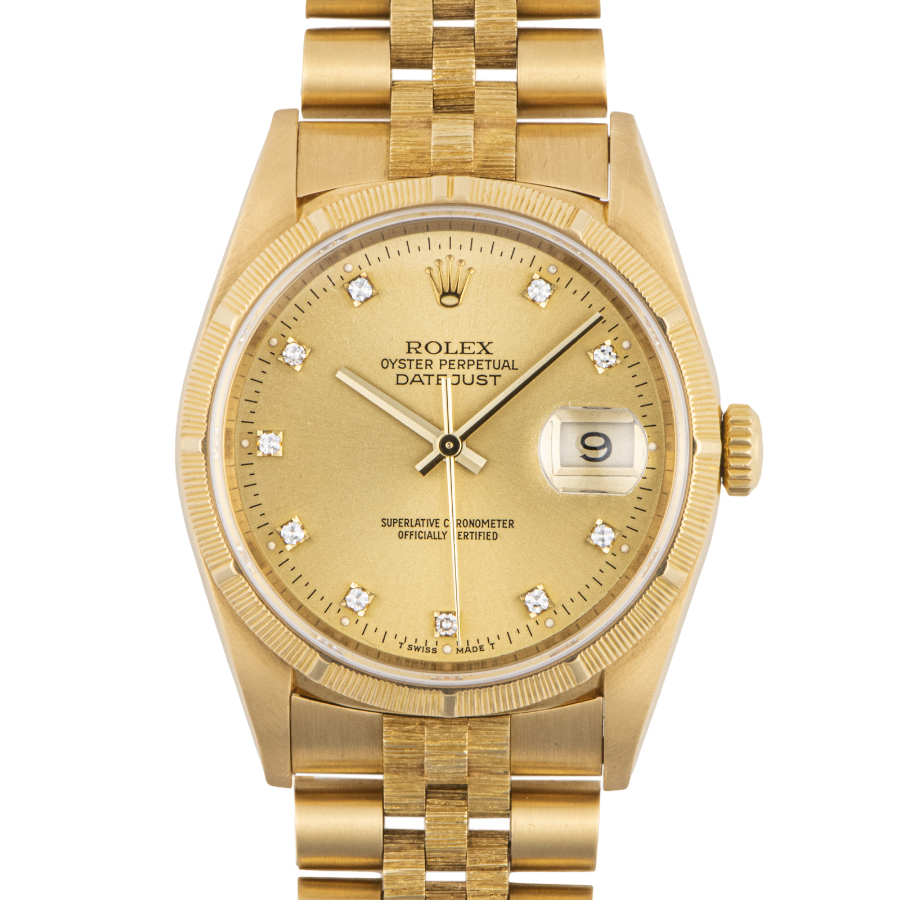 | 商品説明 | ☆高級感のあるYG無垢のデイトジャストが入荷致しました。 ベゼルとブレス中央に樹皮が由来とされているバーク仕上が施されている珍しい一本です。 ※微細な小傷程度はありますが、目立つ大きな傷などなく綺麗な状態です。 バックルにわずかに凹みがありますが、着用時目立たない程度です。 その他特筆すべきダメージはありません。 |