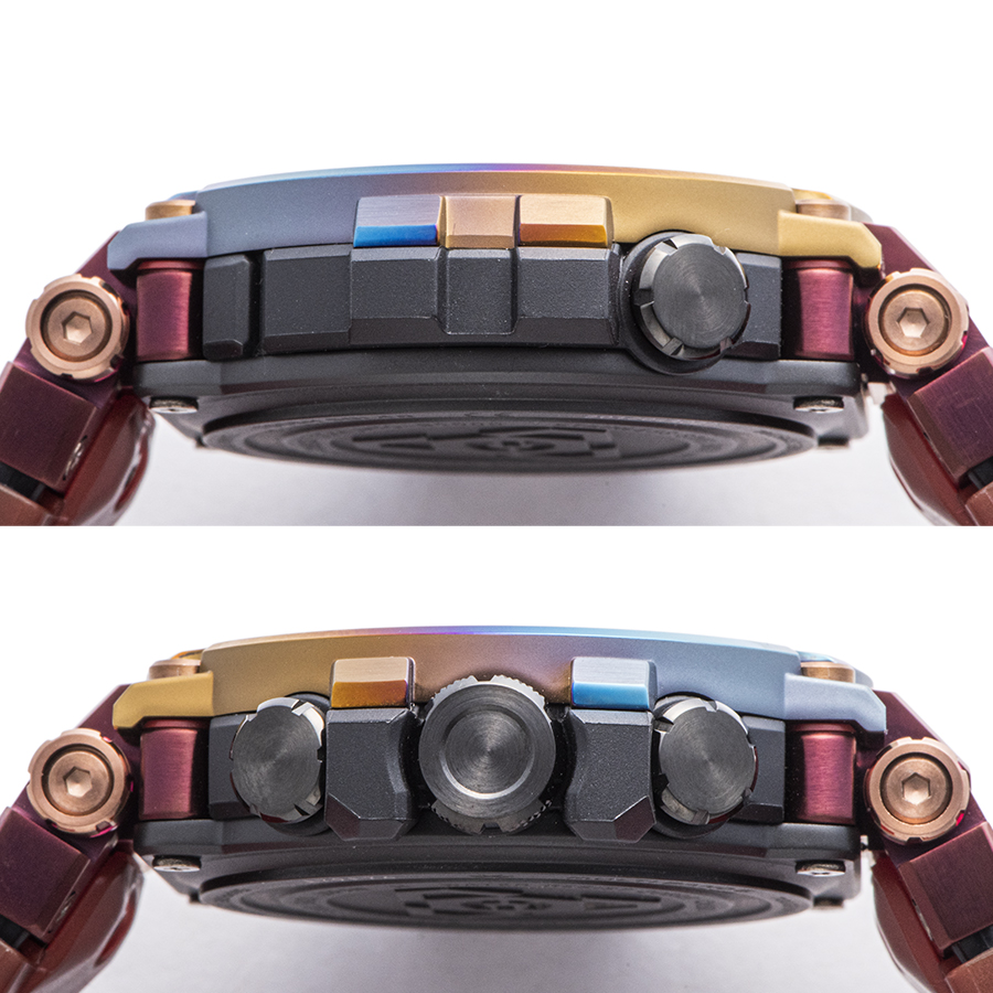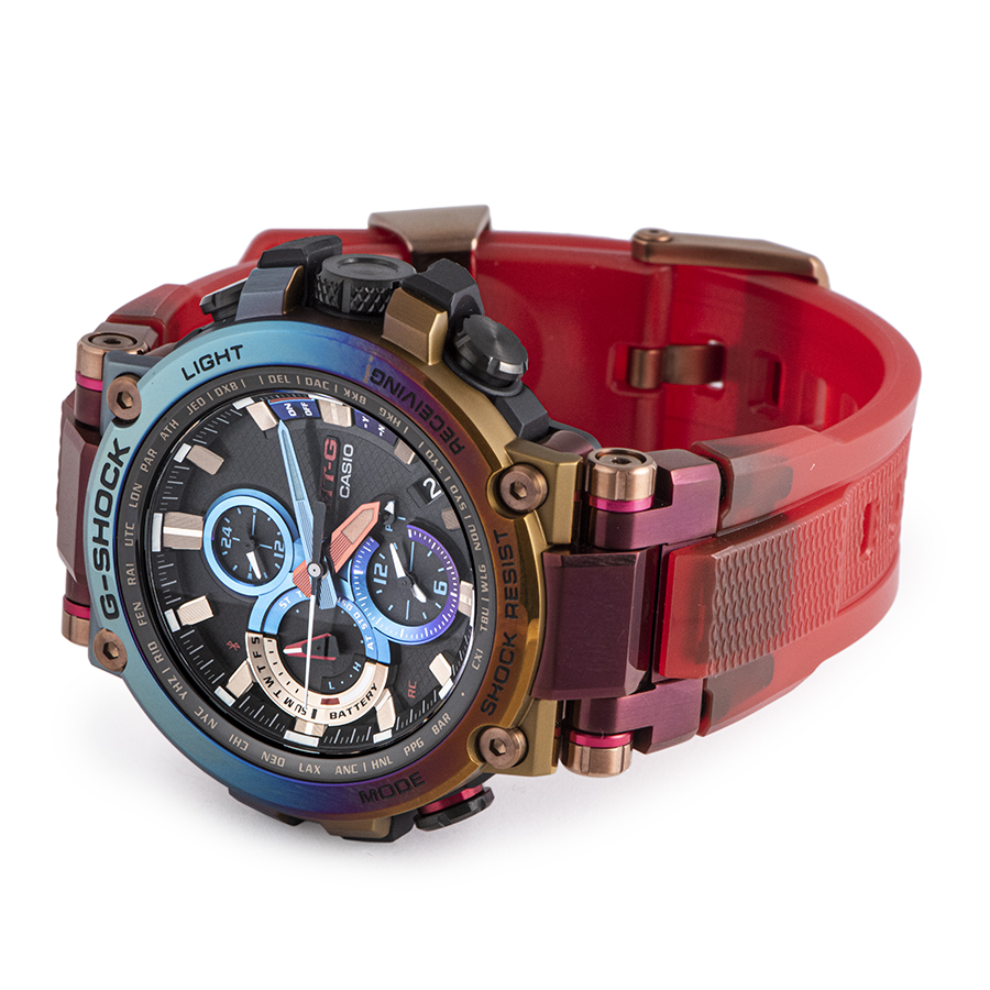 | 商品説明 | ☆今回のモデルは、火山の噴火によって発生する雷である「火山雷」を表現するため、レインボーIPを施したベゼルとマルチカラーの文字板、そしてMT-Gシリーズ初となるスケルトンレッドのソフトウレタンバンドを採用。 またこのレインボーIPは、特殊な環境で発生するこの現象のイメージと重ね合わせ、1点ずつ異なる色合いで表現しています。 生産終了モデルです。 ※展示未使用品 |