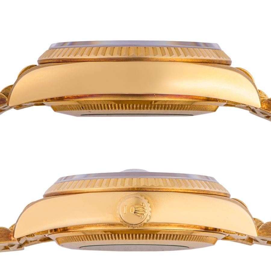 | 商品説明 | ☆K18YG製オニキスダイヤルのデイデイトが入荷致しました。 ※仕上げで消せる程度の微細な傷はありますが、ケースせを考慮して敢えて外装仕上げは行っておりません。 金ヤケによる変色が全体に出ておりますが、ブレスの伸びは少なくしっかりとしています。 |