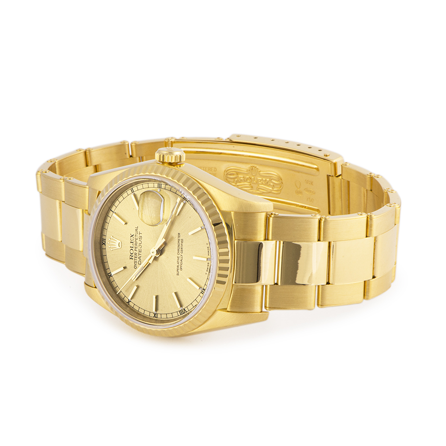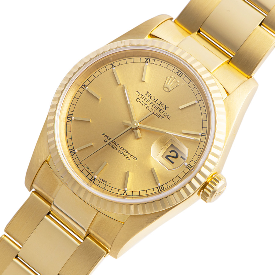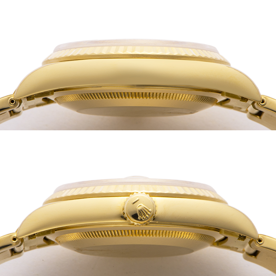 | 商品説明 | ☆K18YG無垢ケースのシャンパンダイアルのデイトジャストが入荷致しました。 ケースコンディションも大変よく、また伸びがほとんどないリベットブレスレットが装着されております。 ※外装仕上げ済みで、目立つ大きな傷などなく大変綺麗な状態です。 |