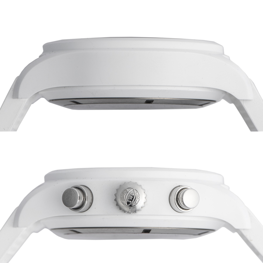 | 商品説明 | ☆トップガンの戦闘機が飛行する山岳地帯「レイク・タホ」の冬景色と米海軍のホワイトユニフォームにインスピレーションを得て作られているので、セラミックを使用した真っ白なケースとなっております。 トップガンのロゴがケースバックに刻印されています。 2022年発表の年間1000本のみ限定生産されるモデルです。 ※未使用品 |