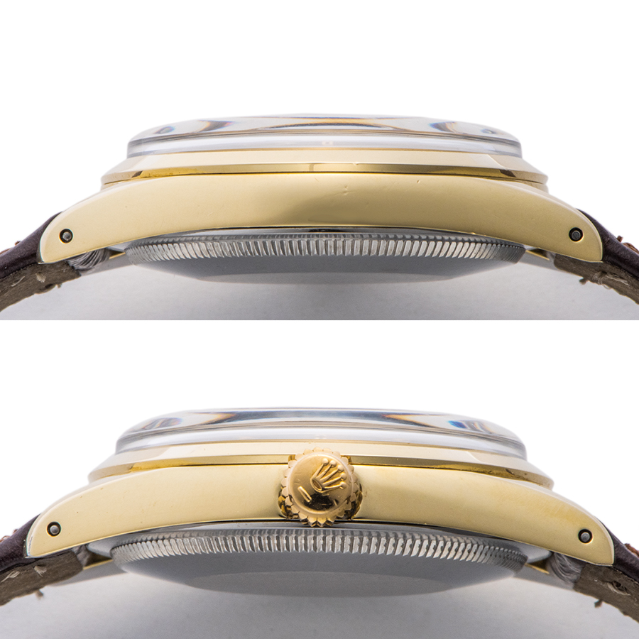| 商品説明 | ☆ゴールドメッキタイプのパーペチュアルです。 ドーム型のプラ風防やエイジングした針など、現行モデルでは味わえないアンティークの雰囲気をお楽しめるいただけるモデルです。 ※微細な使用傷がケース本体にあります。 目立つ大きな傷や致命的なダメージは見受けられません。 針に経年劣化によるクスミが見受けられます。 新品社外革ベルトに交換済みです。 |