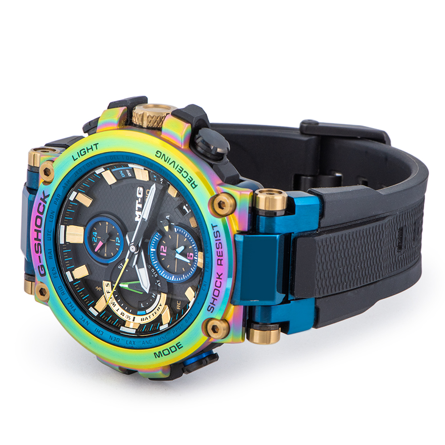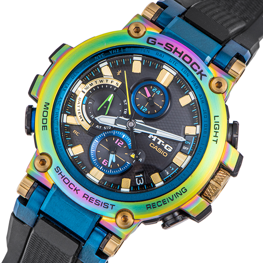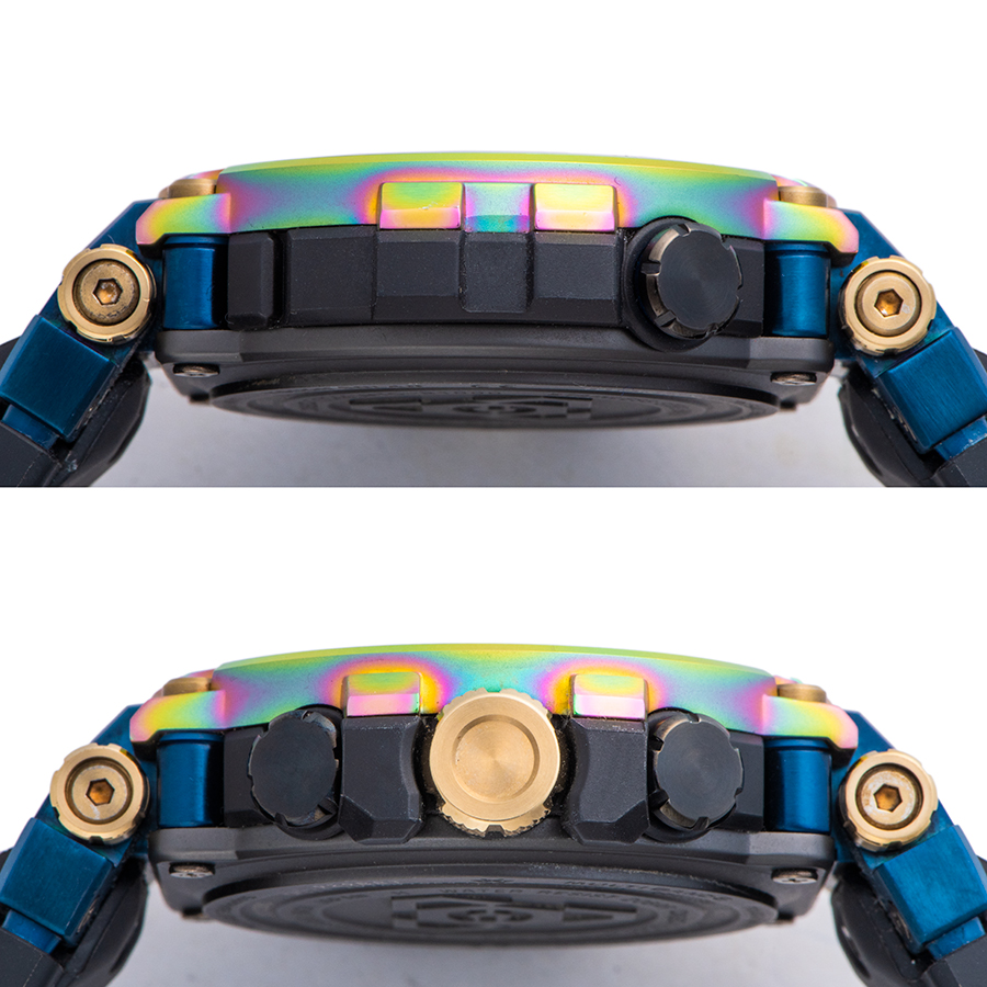 | 商品説明 | ☆メタルと樹脂を融合したMTG-B1000シリーズからNewモデルが登場。 今回のモデルは、1999年に誕生したMT-Gシリーズの「生誕20周年」を記念した特別なカラーリングを採用。 メタルベゼルにレインボーIPを施すことで、貴重で神秘に満ちたルナレインボーのイメージと重ね合わせ、1点ずつ異なる色合いで表現しています。 ※目立つ大きな傷や致命的なダメージなどなく大変綺麗な状態です。 |