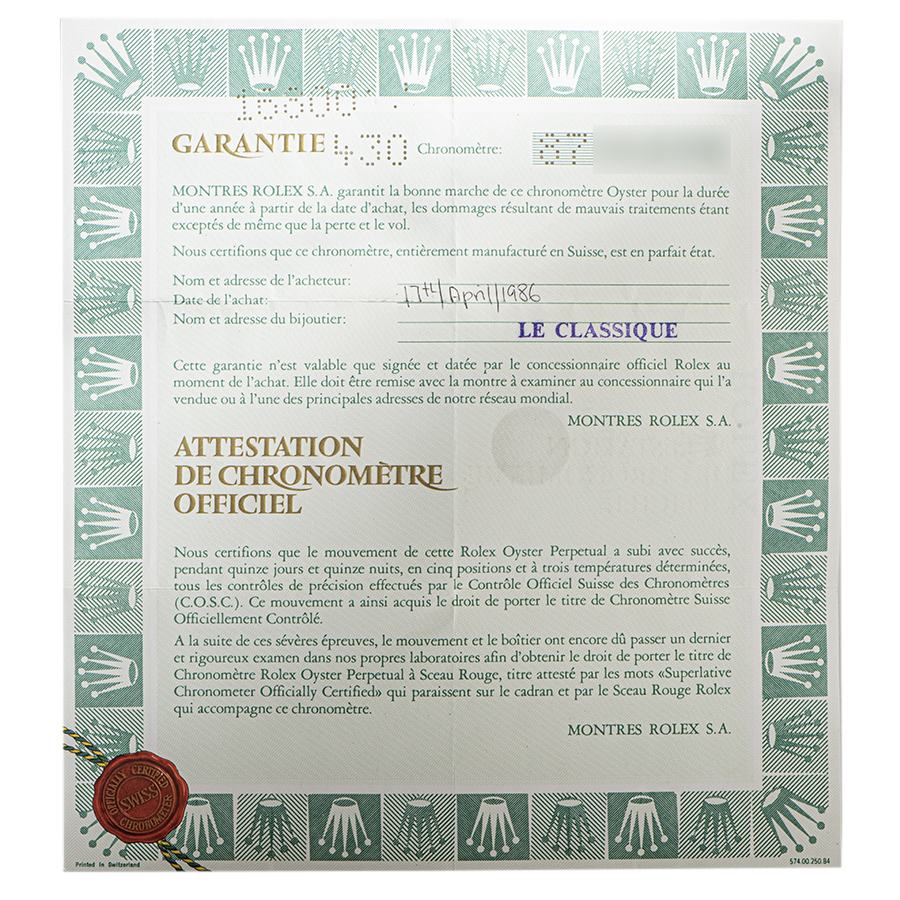 | コンディション | ガラス:角を爪でなぞると僅かに引っかかる程度のガラス欠けがあります(肉眼では見えません) 文字盤・針:経年劣化によるプツプツが文字盤にあり、針にクスミや秒針と分針のトリチウム夜光にひび割れがあります ベゼル:目立たない程度の微細な使用キズが僅かにあるが、大変綺麗な状態 ケース:目立つ大きな傷などはなく大変綺麗な状態 ブレスレット:使用傷が僅かに残るが、目立つ大きな傷などはなく大変綺麗な状態 ※弊社で研磨仕上げ済み |