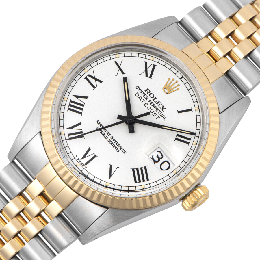 | 商品説明 | ☆クイックチェンジ付きのデイトジャストです。 非常にレアなホワイトカラーのローマンダイヤルです。 大きくプリントされたローマンインデックスで通称バックリーダイヤルと呼ばれ、海外での評価が高く注目を集めています。 |