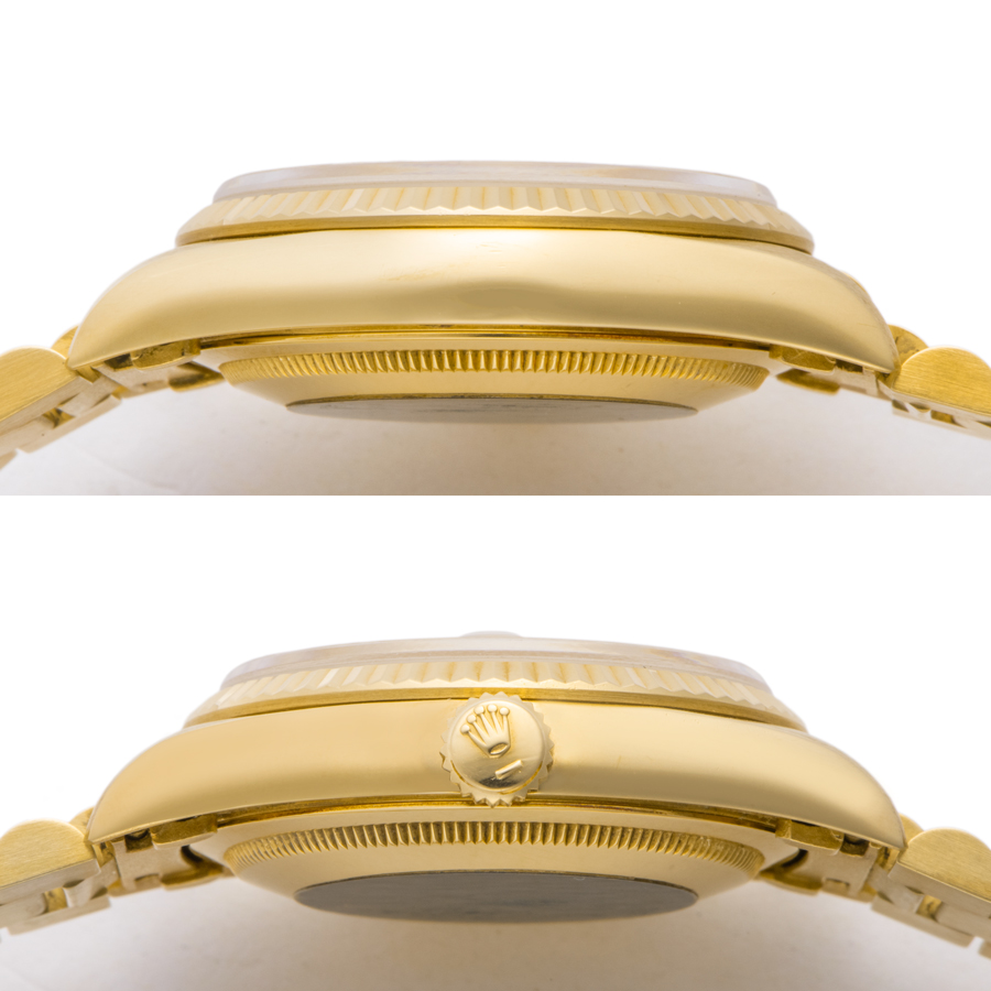 | 商品説明 | ☆K18YG無垢モデルでずっしりとした重量感のある、ロレックス最高峰のドレス系モデルです。 綺麗なシャンパンダイアルに8Pダイヤ、2Pバケットダイヤをセッティングした華やかなモデルです。 ※ケース本体、ブレスに使用に伴う微細な小傷程度はありますが、敢えて仕上げをする程では御座いません。 ガラス風防の角を爪でなぞるとわずかに引っかかる程度のガラス欠けがありますが、肉眼では見えない程度です。 目立つ大きな傷や致命的なダメージなどなく綺麗な状態です。 ケース痩せも少なく大変おすすめな個体です。 |