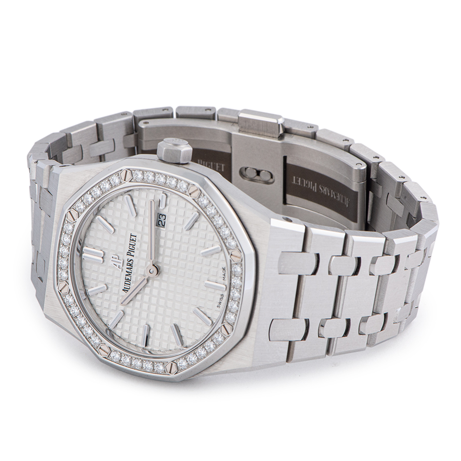| 商品説明 | ☆ロイヤル オークのスレンダーで建築的なフォルムが33ミリのケースにブリリアントカットダイヤモンド40個をベゼルにあしらった豪華なモデルです。 「グランド・タペストリー」パターンのダイヤルとのバランスも良く、ラグジュアリーな雰囲気を持つモデルになっています。 ※特筆すべきダメージはなく大変綺麗な状態です。 |