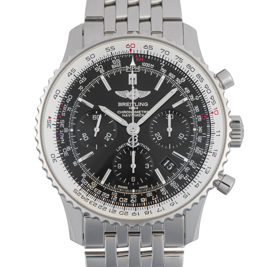 | 商品説明 | ☆ブラックのインダイアルを配した特別仕様の「ナビタイマー01ブラックブラック」。 裏蓋にリミテッド数が刻印された日本400本の限定モデルです。 ※目立つ大きな傷などなく大変綺麗な状態です。 バックルにわずかな微細な拭き傷があります。 |