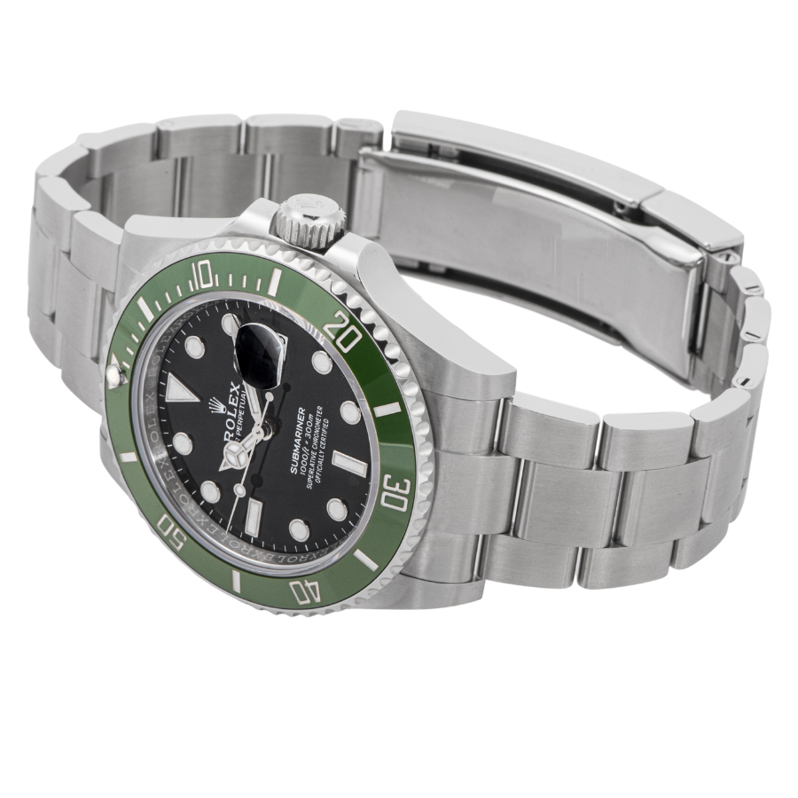 | 商品説明 | ☆116610LVがグリーン文字盤からブラック文字盤への変更。 文字盤にある、ドットのインデックスには青白い発光をするクロマライト夜光塗料を採用することにより視認性がアップされています。 70周年記念モデルとして従来の126610LVよりも明るいグリーンベゼルが特徴でございます。 |