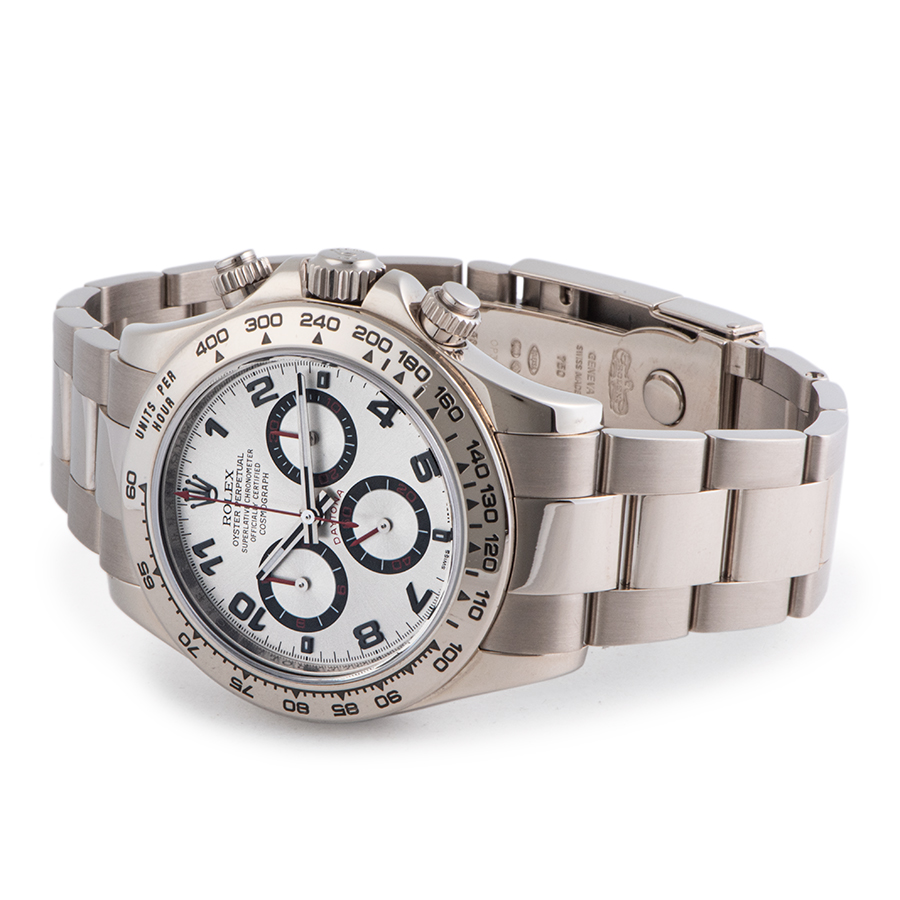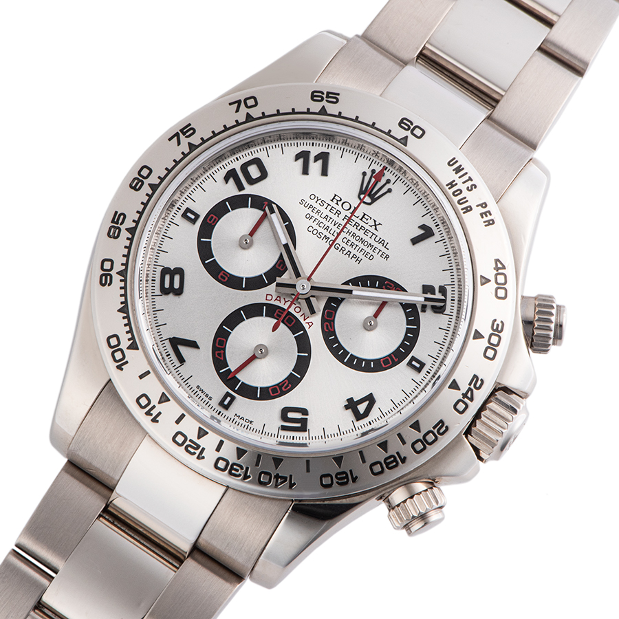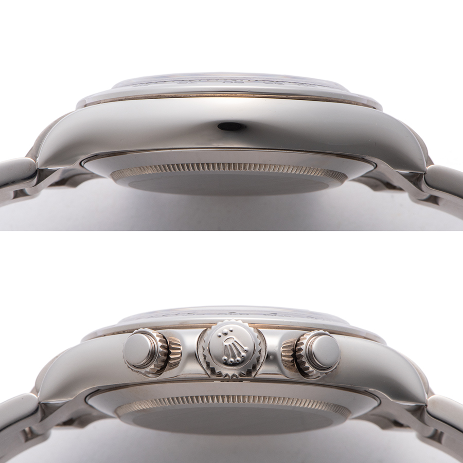 | 商品説明 | ☆1963年に誕生した人気スポーツロレックス「コスモグラフ デイトナ」。 アラビア数字がよりスポーティーな印象でケース・ブレスレットともにホワイトゴールドを使用した腕元に装着した際の重量感を堪能することが出来るデイトナの中でもワンランク上のモデルです。 ※ケースサイドに肉眼ではほぼわからない程度の小さな打ち傷が2か所程見受けられます。 外装仕上げ済みで、その他の箇所には特筆すべきダメージなどなく大変綺麗な状態です。 |