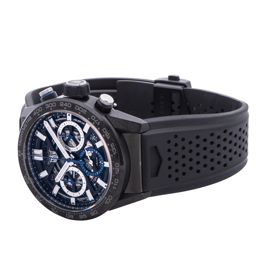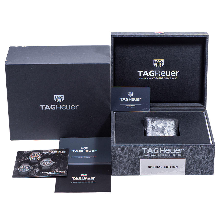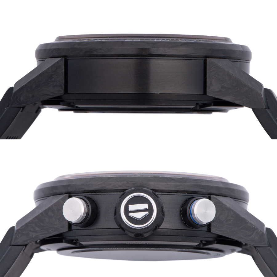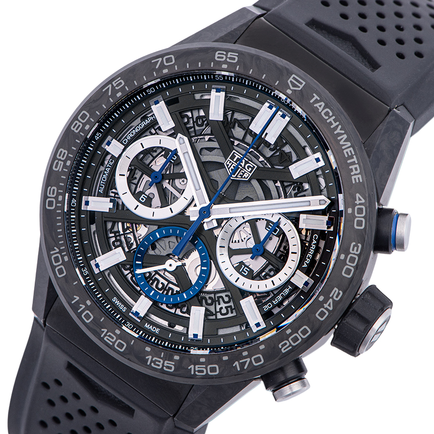 | 商品説明 | ☆キャリバー ホイヤー02自動巻ムーブメントを搭載しています。 全面スケルトンになっていますので、細かな動きを眺める事ができます。 43mmという大型ケースに軽量かつ耐久性に優れたカーボンを使用しており、世界750本限定となります。 ※11時・1時方向ラグの角にカーボンの欠けがあります(画像参照)。 その他の箇所に目立つ大きな傷などなく概ね綺麗な状態です。 |