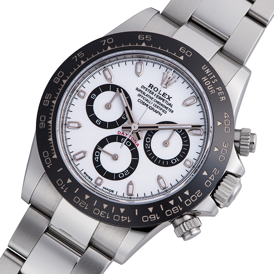 | 商品説明 | ☆現行型のデイトナの新品が入荷致しました。 ロレックスが開発・特許取得したブラック セラミック製のモノブロック セラクロムベゼルを備えています。 ■掲載写真に関して 新品・未使用品の商品写真は、同一モデルの画像を使用し掲載致しております。 |