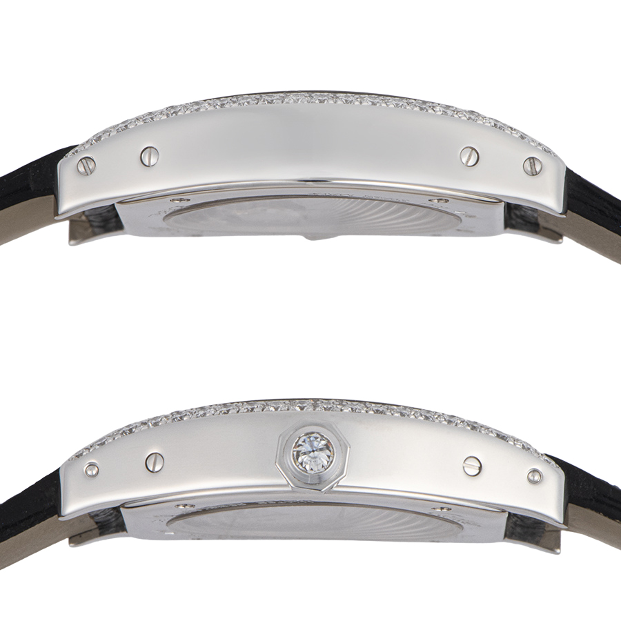 | 商品説明 | ☆亀の甲羅の形をした「トーチュ」。 こちらは18金ホワイトゴールド素材に、ベゼルのダイヤがエレガントなモデルです。 ※外装仕上げ済みで目立つ大きな傷などなく大変綺麗な状態です。 ケースサイド9時方向に僅かな線傷が残ります。 純正革ベルトの使用感はありません。 |