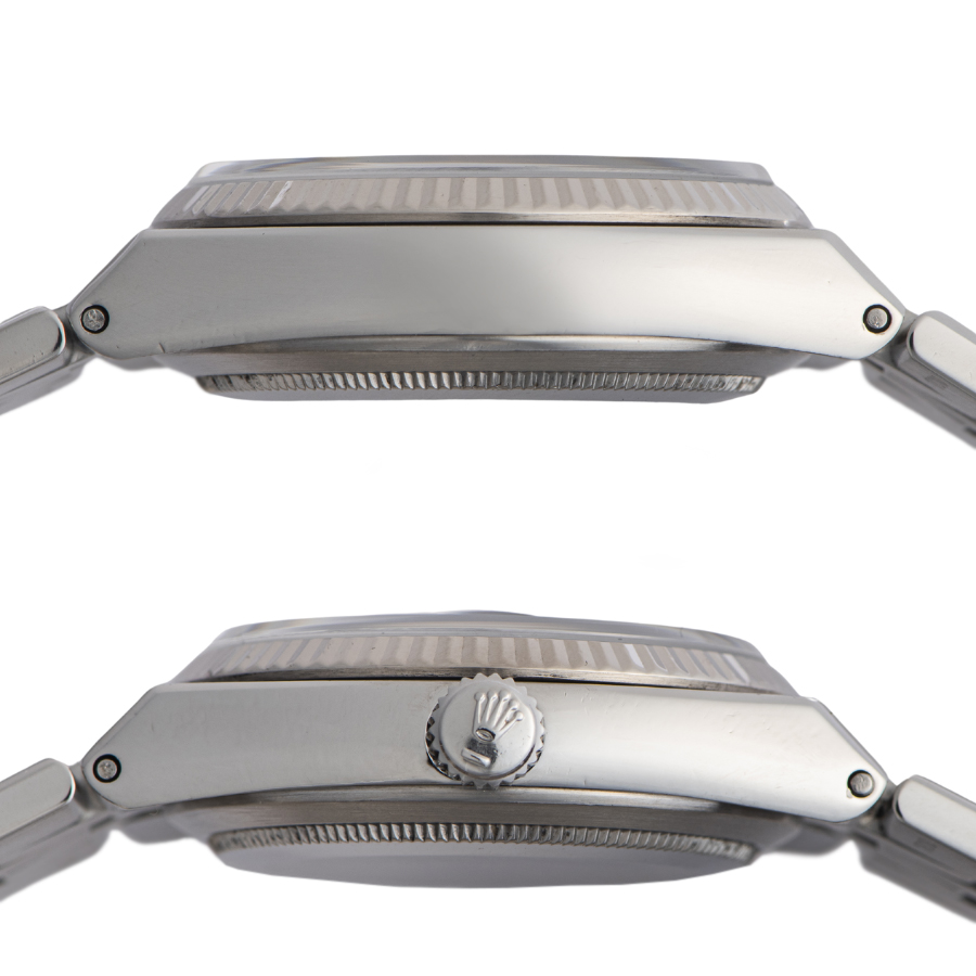 | 商品説明 | ☆デイトジャストのクォーツモデルは、ジェラルド・ジェンタ氏デザインのケースとブレス一体型フォルムが特徴的です。 10ポイントダイヤのグレーダイヤル、夜光は全てオリジナルのトリチウムのままです。 |