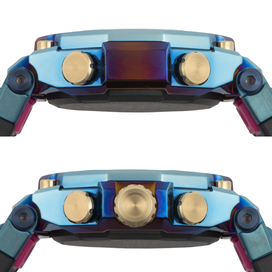 | 商品説明 | ☆カーボン素材を活用したMTG-B2000をベースにし、「ブルーフェニックス」をテーマにデザインされたスペシャルモデルです。 ベゼルとケースの両方にレインボーIPを施し、インパクトあるデザインに仕上げています。 ベゼルには、横向きにグラデーションをかけたレインボーIPを二重に施し、ツートーンの柄を表現しています。 生産終了モデルです。 ※使用に伴う微細な小傷程度はありますが、目立つ大きな傷などなく概ね綺麗な状態です。 |