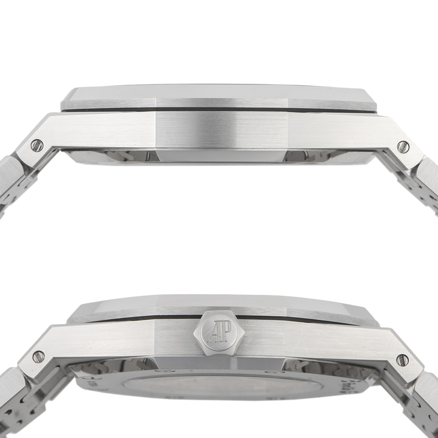 | 商品説明 | ☆2012年のモデルチェンジにより39mmから41mmにサイズアップし、一段とスポーティーな雰囲気になった15400STが入荷しました。現在は生産終了となっております。 ※仕上げで消せる程度の薄い線傷がベゼルやブレスの一部にあります。着用時は目立たない程度で敢えて仕上は行っておりません。 その他目立つ大きな傷などなく大変綺麗な状態です。 |