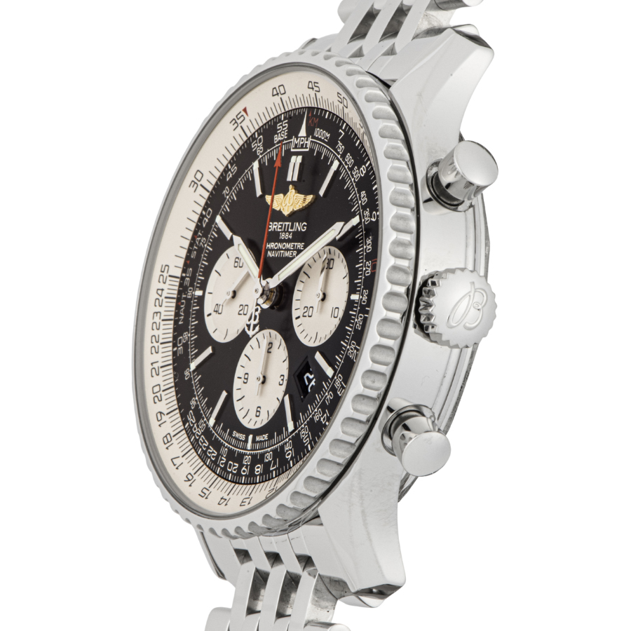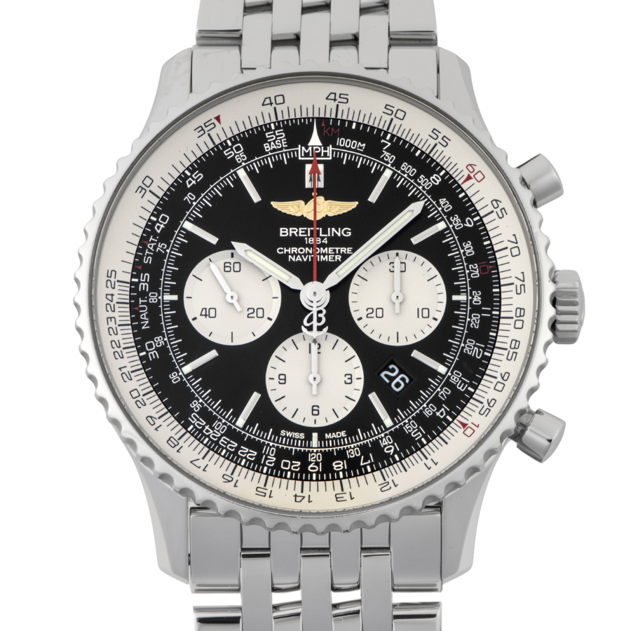 | 商品説明 | ☆自社ムーブメントを搭載したナビタイマー01にあらたにラインナップされた46mmサイズモデルです。 |
