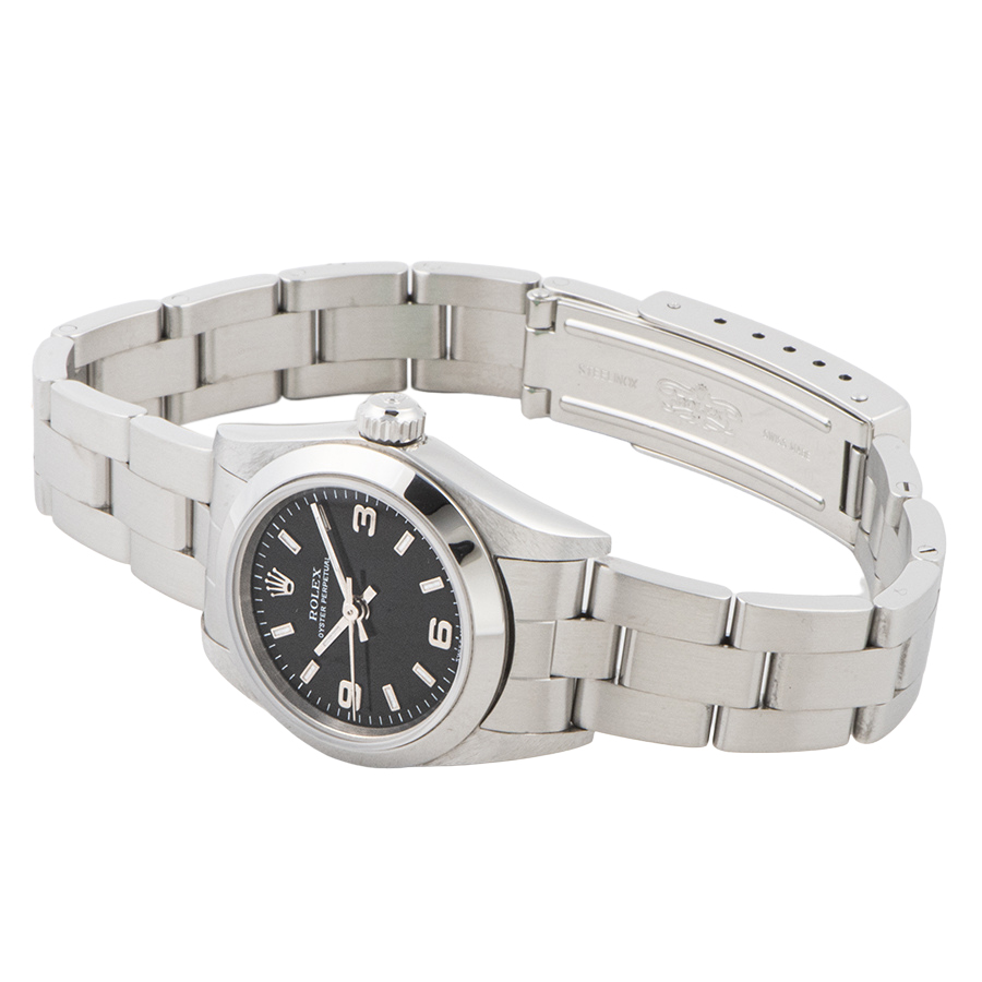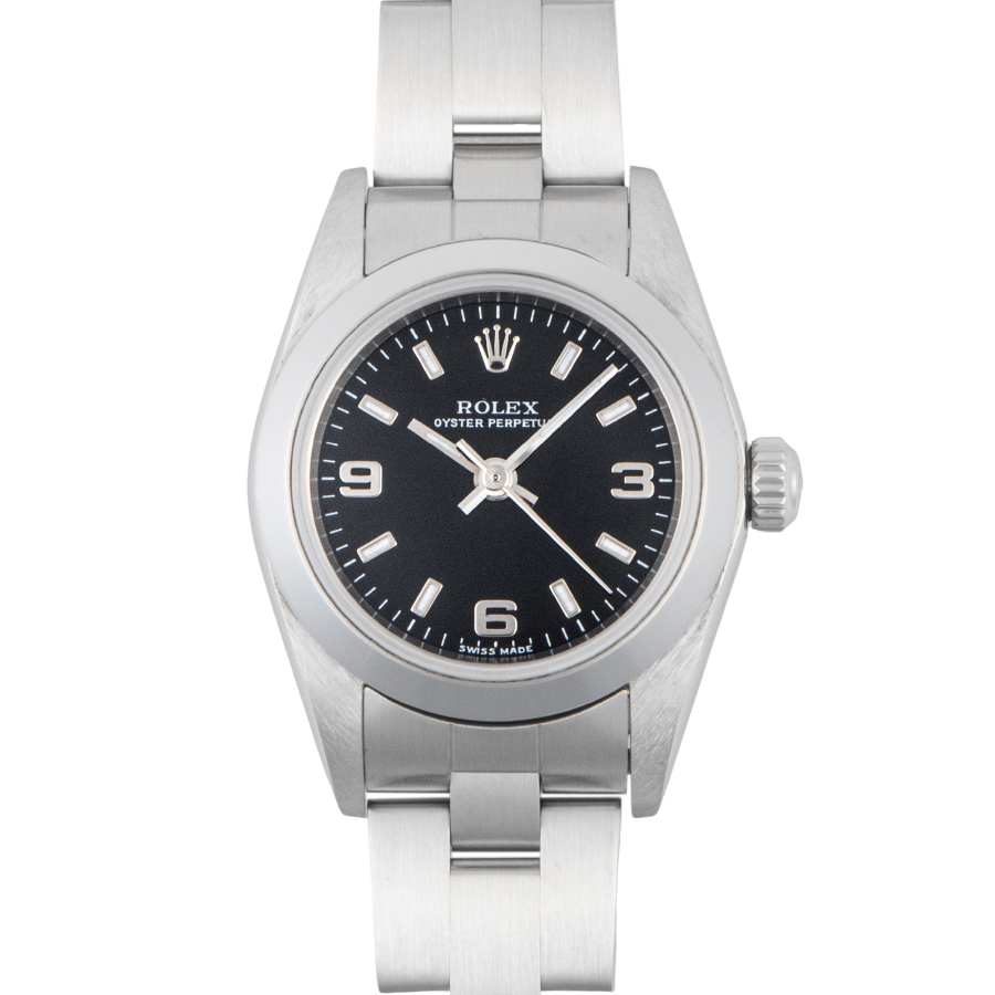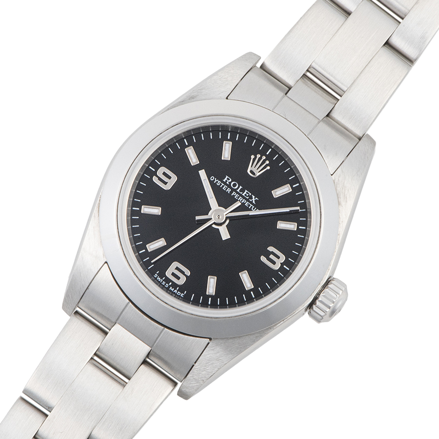 | 商品説明 | ☆レディースモデルで人気の高いオイスターパーペチュアルのブラックダイアルが入荷致しました。 ※外装仕上げ済みで目立つ大きな傷などなく大変綺麗な状態です。 |