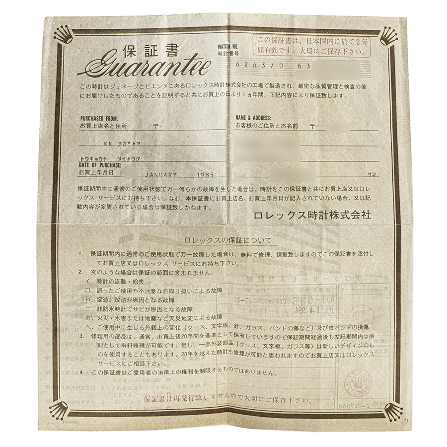 | 付属品 | 箱・保証書(1985年国内) |