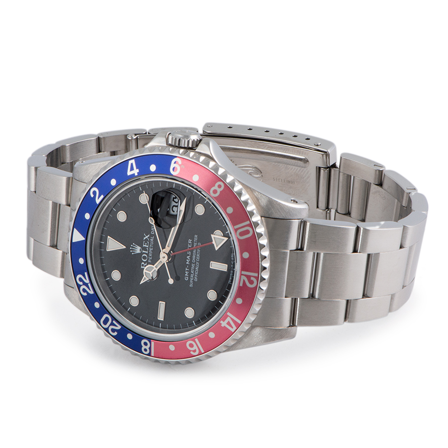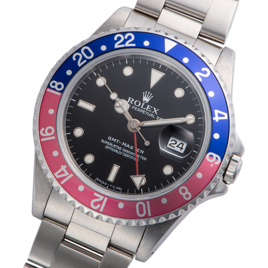| 商品説明 | ☆オールトリチウム夜光、フチありインデックス、シングルバックルのGMTマスターが箱・保証書付きで入荷致しました。 ※ベゼル3時位置に小さな傷が御座います。(写真参照) ケース本体、ブレス共に目立つ大きな傷や致命的なダメージなどなく無く綺麗な大変綺麗な状態です。 |