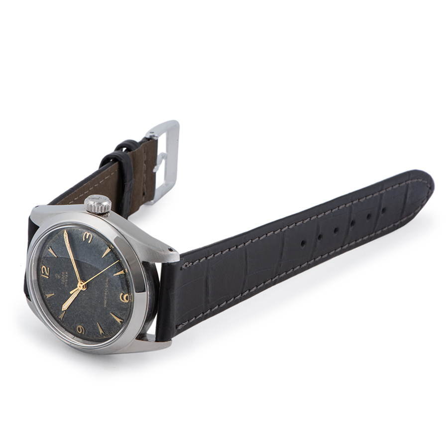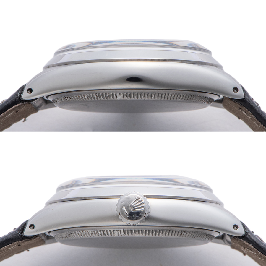 | 商品説明 | ☆希少なプリンスオイスターデイトの小バラが入荷しました!! ※外装仕上げ済みで、目立つ大きな傷などなく概ね綺麗な状態です。 経年劣化によるダイアルのクスミ、針にサビがでておりますが、アンティーク時計のいい雰囲気がある個体です。 新品社外革ベルトに交換済みです。 |