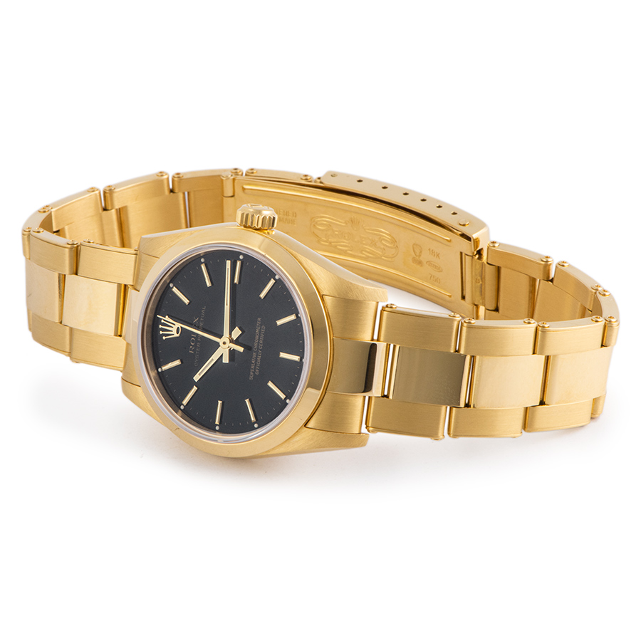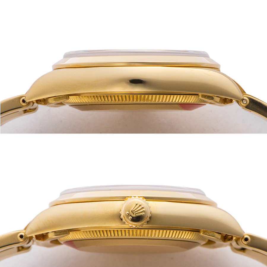 | 商品説明 | ☆華やかなK18イエローゴールド、ボーイズモデルのオイスターパーペチュアルが入荷致しました。 ※外装仕上げ済みで、目立つ大きな傷など無く大変綺麗な状態です。 リベットブレスの伸びは少なく綺麗な状態を保っています。 |