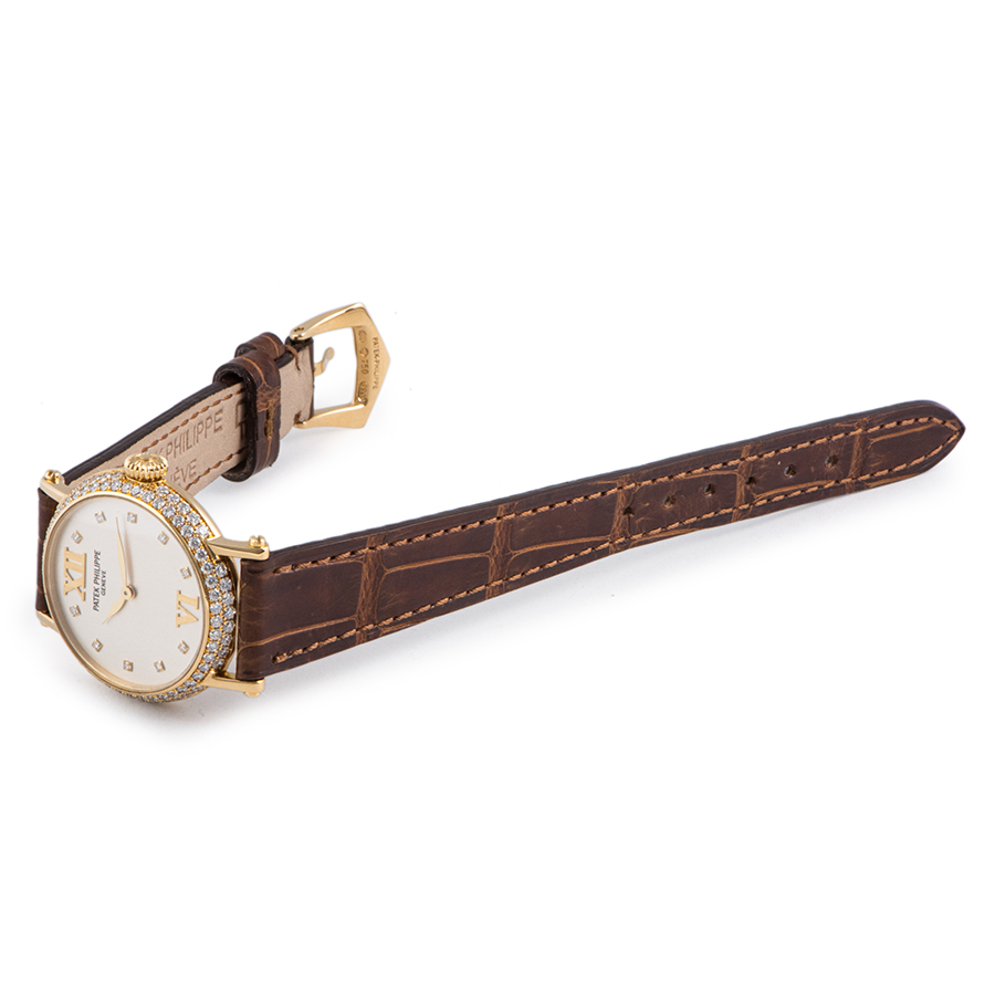 | 商品説明 | ☆人気のパテックフィリップのレディースカラトラバオフィサーが入荷しました。 シンプルなデザインながら、パテックらしい上品さが漂うモデルです。 ベゼルに敷き詰められたダイヤモンドがとても豪華なモデルです。 ※特筆すべきダメージはなく大変綺麗な状態です。 新品の純正革ベルトに交換済みです。 アーカイブには2005/4に購入を記されております。 |