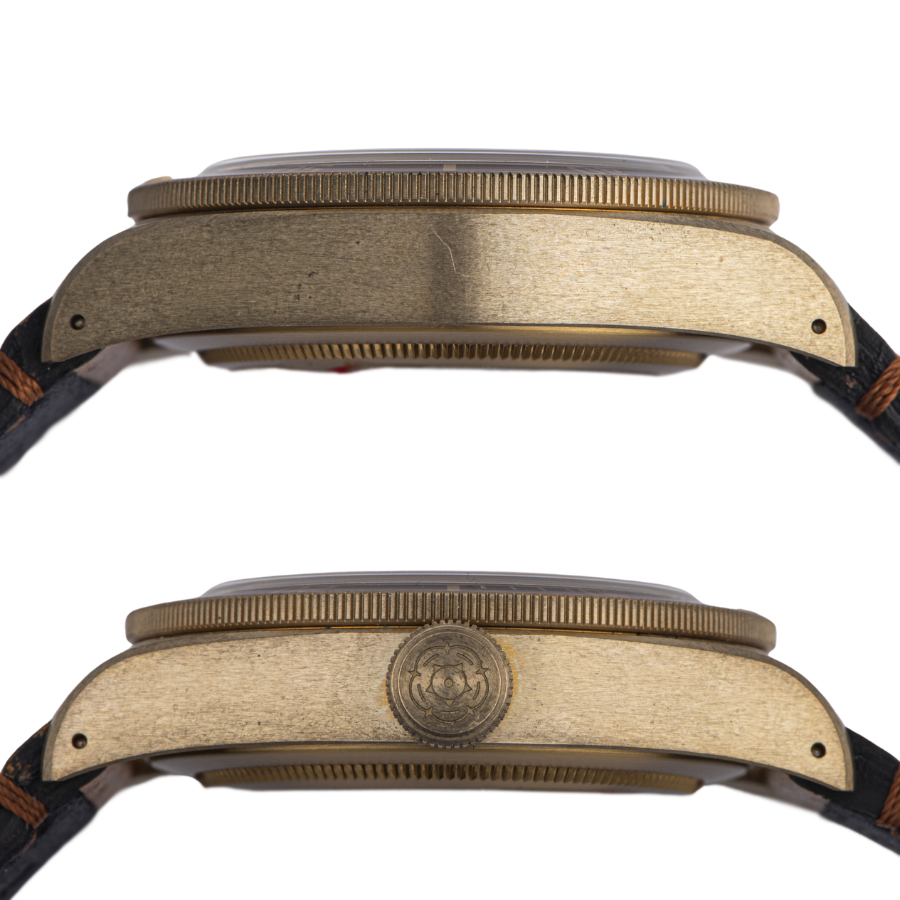 | コンディション | ガラス:欠けやキズはありません 文字盤、針:大変綺麗な状態 ベゼル:特筆すべきダメージはなく大変綺麗な状態 ケース:ケースサイドに使用に伴う小傷が御座います。ブロンズ特有の経年劣化は少なく綺麗な状態 ストラップ:使用感は少なく、大変綺麗な状態 |