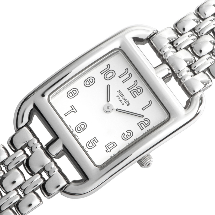 | 商品説明 | ☆エルメスのアイコンジュエリーである「シェーヌ・ダンクル」をモチーフとした「ケープコッド」コレクションは、ケースの滑らかな曲線ラインが美しいモデルです。 今回は珍しいステンレスブレスモデルが入荷しました。 メタルの艶感がケースの曲線美と調和し、腕元にスタイリッシュな輝きを添えます。 |