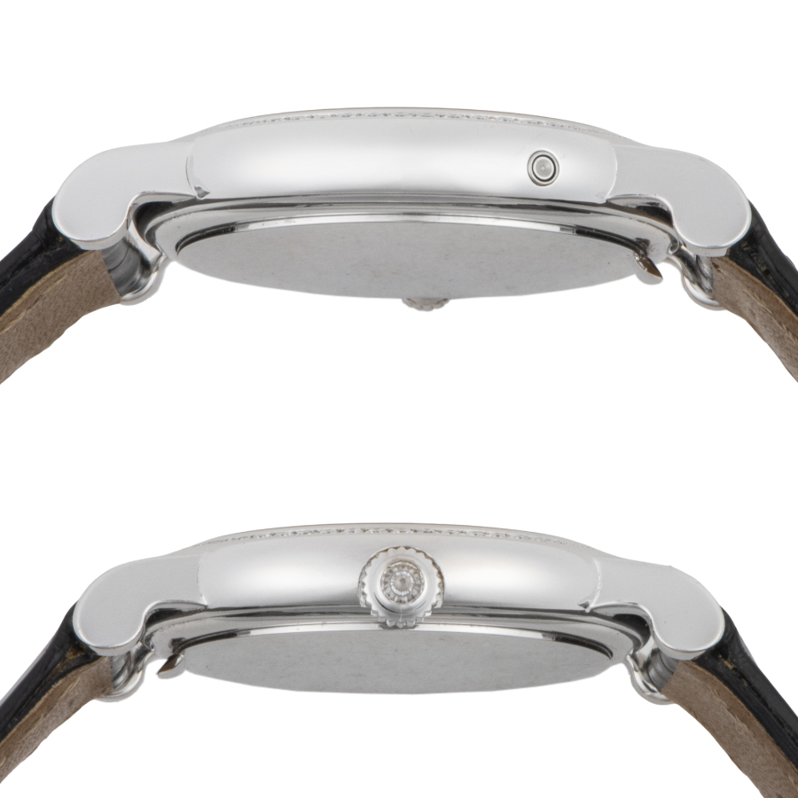 | 商品説明 | ☆手巻式のレディースサイズのカラトラバで、ギョ―シェ彫りのシルバーダイヤルにスモールセコンドとムーンフェイズを配置して機械式の雰囲気を出しています。 ベゼルやインデックス、リューズにダイヤを使用して更なる上品さのあるモデルになっています。 ※使用に伴う小傷はありますが、研磨仕上げで消せる程度です。 痩せを考慮して敢えて研磨は行っていません。 革ベルトは使用感はあまりありませんが、経年変化による変色はあります。 |