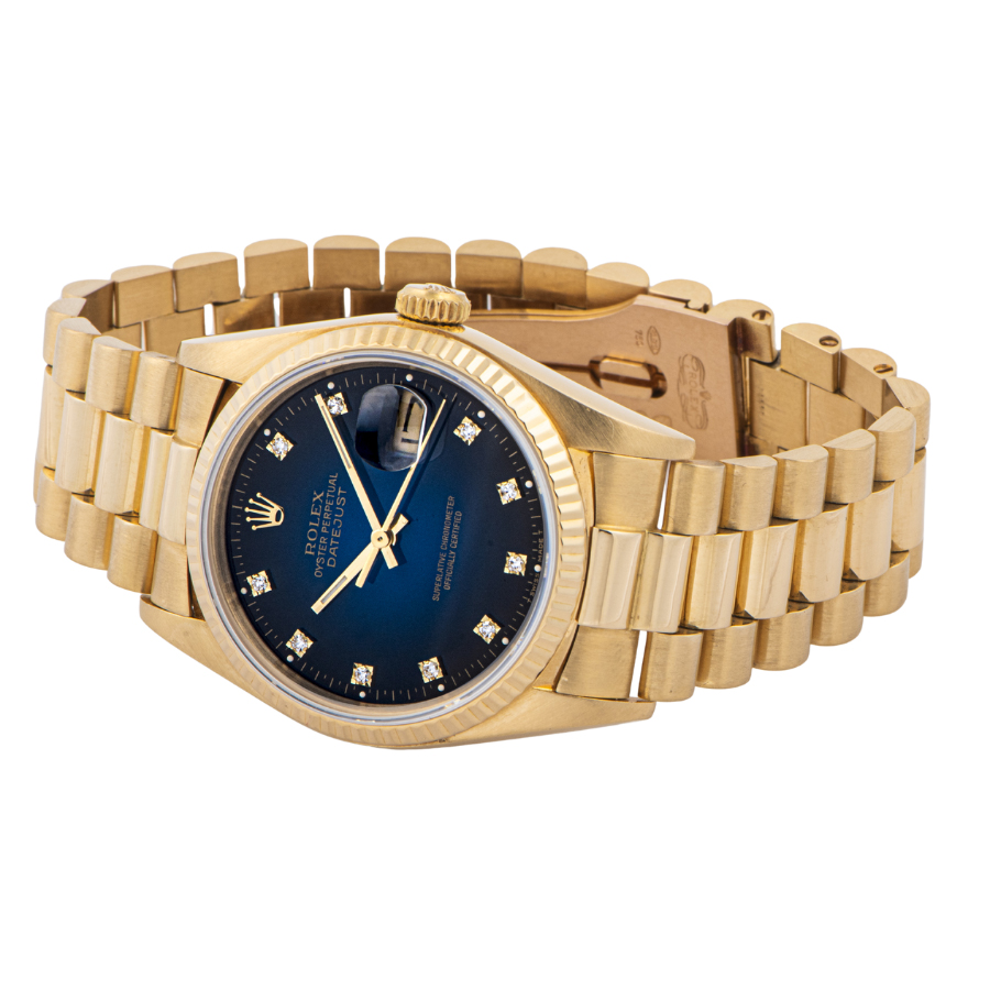 | 商品説明 | ☆K18YG無垢モデルでずっしりとした重量感のある、ロレックス最高峰のドレス系モデルです。 綺麗なブルーグラデーションダイヤルに10ポイントダイヤをセッティングした華やかなモデルです。 ※仕上げで消せる程度の微細な使用傷がケースサイドやブレスレットの鏡面仕上げ部分にあります。 ケースせを考慮して敢えて仕上げは行っておりません。 ブレスに若干の伸びがありますが、年代を考慮して頂ければコンディション大きな問題はございません。 その他目立つ大きな傷などなく概ね綺麗な状態です。 |