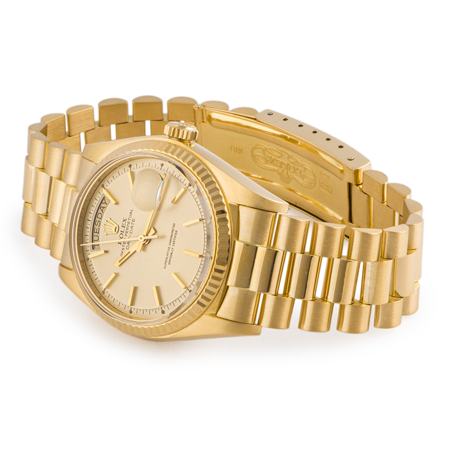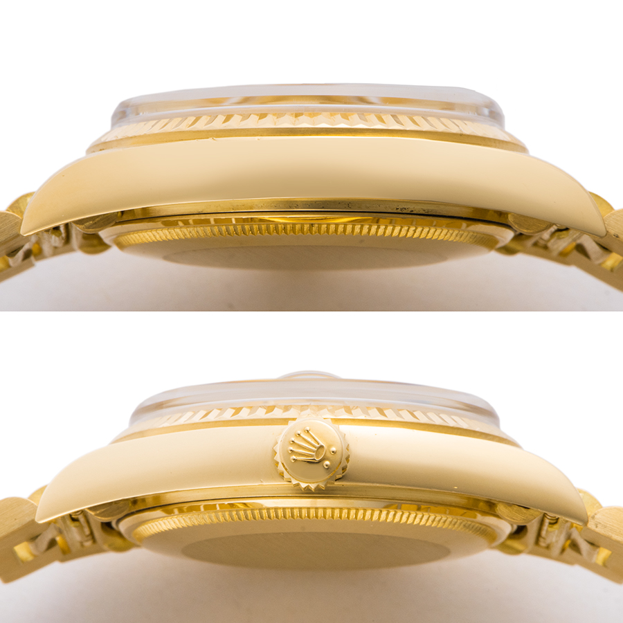 | 商品説明 | ☆ジャパンブレスのK18YG無垢のデイデイトが入荷しました。 ※外装仕上げ済みですが、ケースサイドに着用時に目立たない程度の小さな打ち傷や線傷がございます。 風防12時から1時の角にガラス欠けがございます。 その他には目立つ大きな傷など無く綺麗な状態です。 |