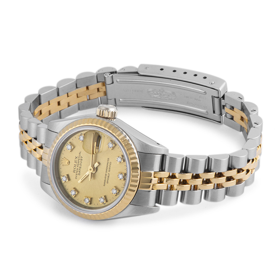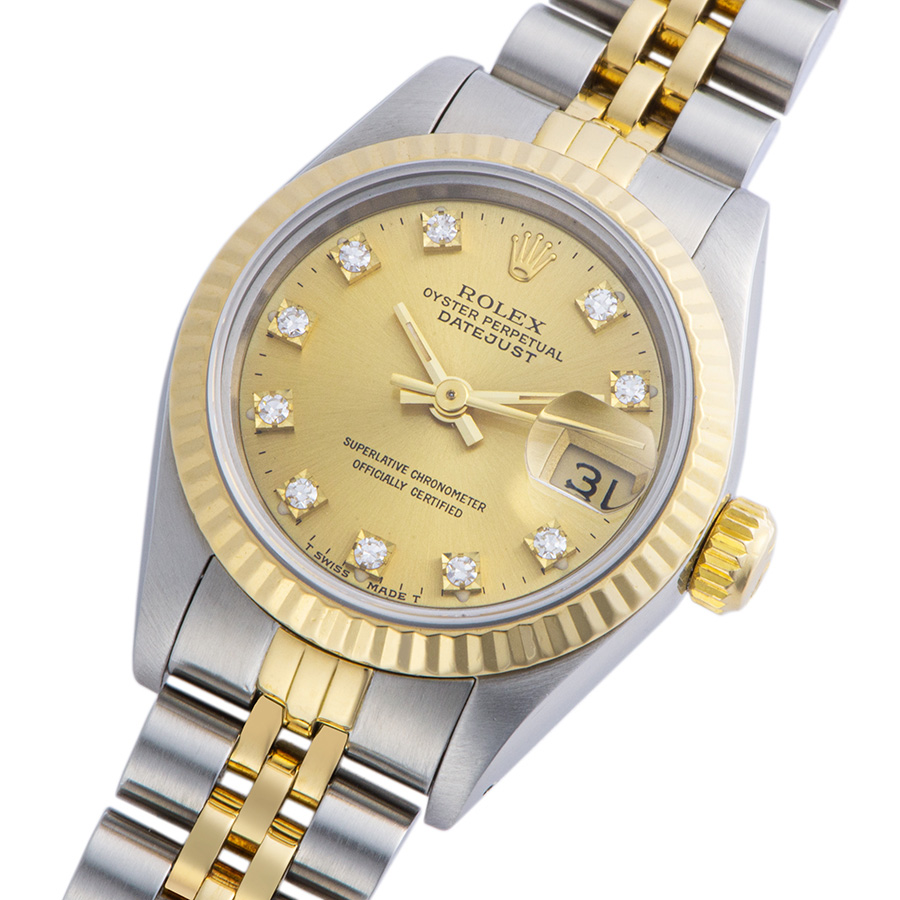 | 商品説明 | ☆ロレックスコンビの代表的モデル。コンビモデルは現在でも人気が高い時計です。 ダイヤモンドがセッティングされており、手元を華やかに演出してくれます。 ※ベゼル部分6時方向に着用時目立たない程度の小さな打ち傷が見受けられます。 外装仕上げ済みで、目立つ大きな傷などなく大変綺麗な状態です。 |