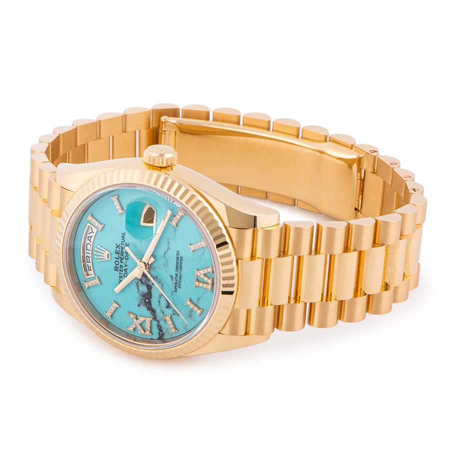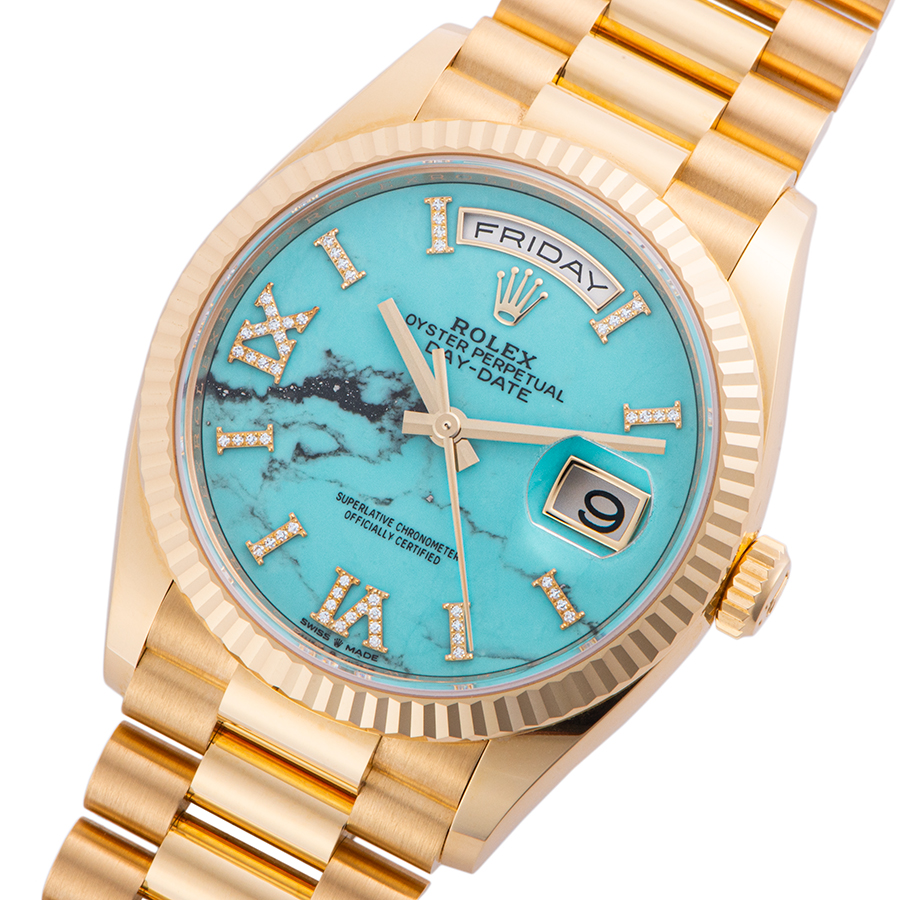 | 商品説明 | ☆ロレックスのラインナップの中で最上級に位置するのがデイデイトです。素材はゴールドもしくはプラチナ素材のみというラインナップで、ロレックスで唯一フルカレンダー表示を搭載するモデルとなります。 またこのモデルは特に目を引くターコイズの文字盤で、トルコ石とも呼ばれ、色鮮やかなブルーが特徴的です。 市場ではあまりお目にかかれない希少モデルです。 |