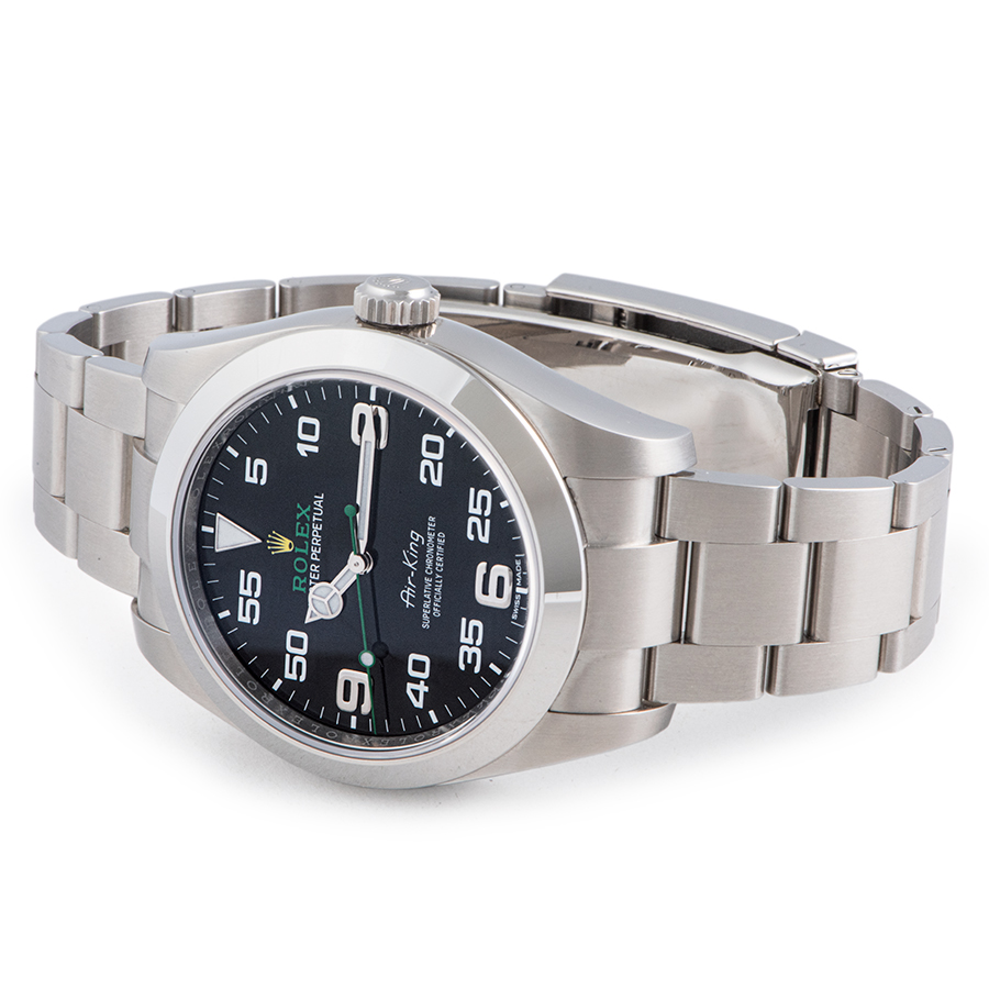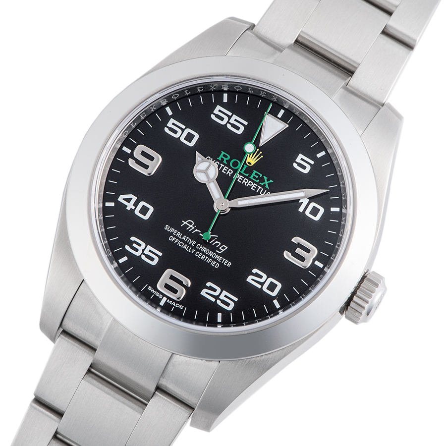 | 商品説明 | ☆2016年バーゼルワールド新作のエアキングが入荷致しました。 「分」を読み取ることに特化したアラビアインデックスを採用し、搭載されるキャリバー3131は磁気の影響を受けないように磁気シールドで保護されています。 これまでのエアキングとは一線を画するモデルとなっております。 ※ケースサイドや微細な小キズ程度はありますが、ケース痩せを考慮して敢えて仕上げは行っておりません。 ベゼル12時側に仕上げで消せる程度の微細な小傷が見受けられます。 目立つ大きな傷などはなく概ね綺麗な状態です。 |