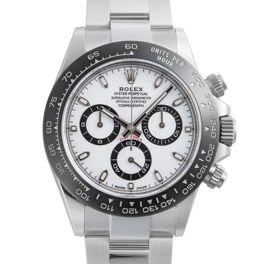 | 商品説明 | ☆現行型のデイトナの新品が入荷致しました。 ロレックスが開発・特許取得したブラック セラミック製のモノブロック セラクロムベゼルを備えています。 ■掲載写真に関して 新品・未使用品の商品写真は、同一モデルの画像を使用し掲載致しております。 |