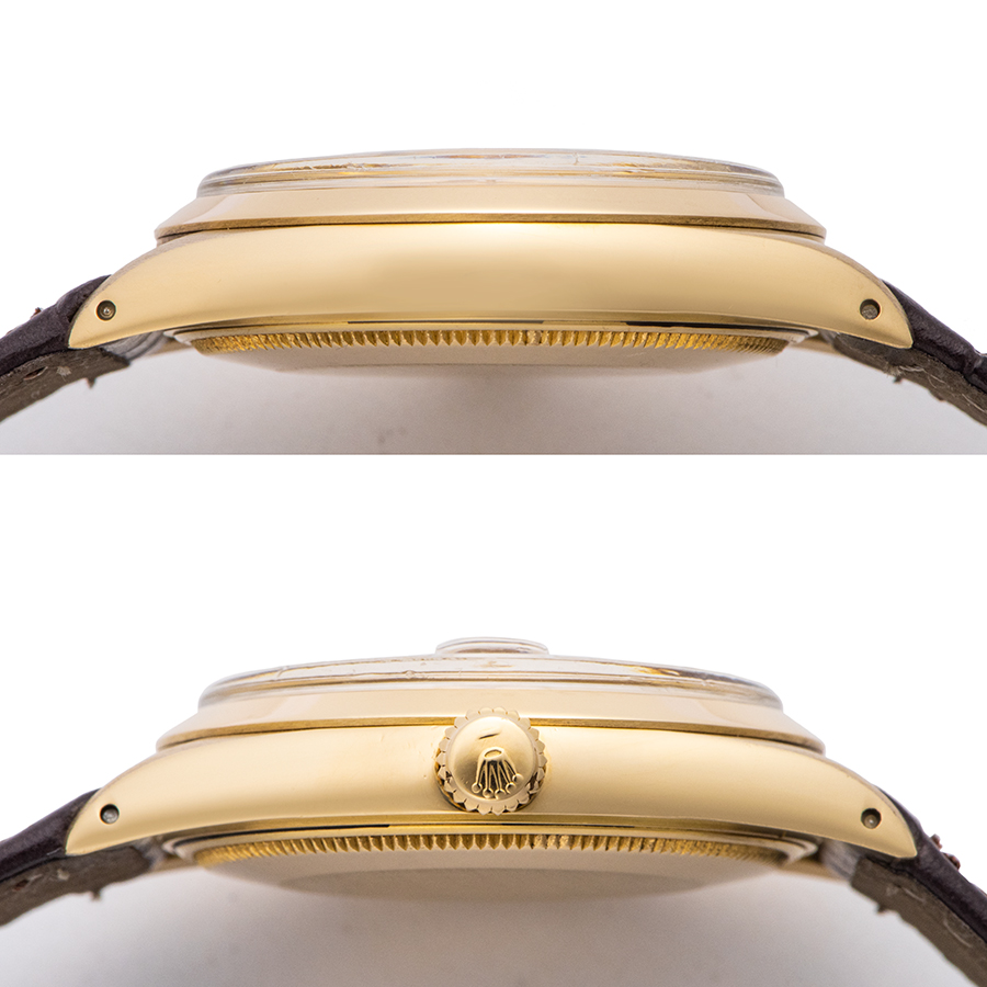 | 商品説明 | ☆シンプルで使いやすいパーペチュアルデイトのK18YGモデルが入荷致しました。 ※外装仕上げ済みで、目立つ大きな傷などなく綺麗な状態です。 針に経年劣化による若干のクスミがあり、文字盤に目立たない程度の傷がありますが、年代を考慮していただければコンディションに大きな問題はございません。 |