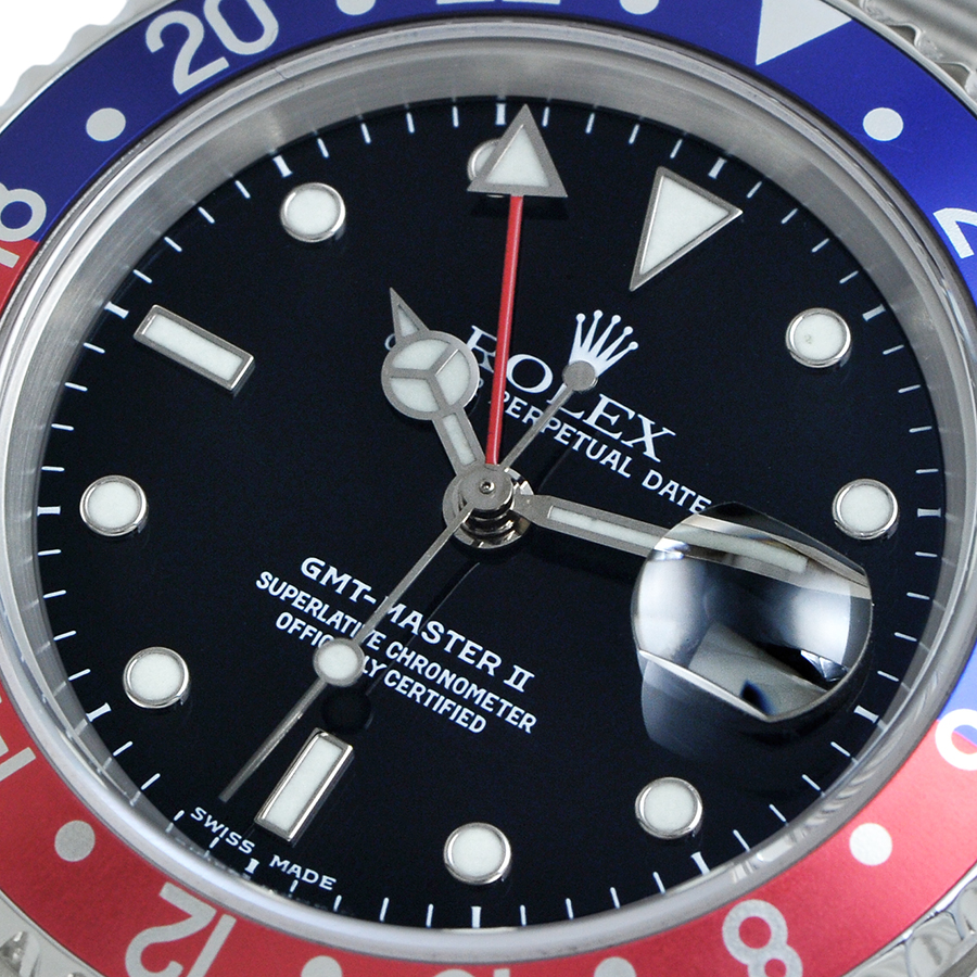 | 商品説明 | ☆人気の旧型GMTマスターIIの人気の赤、青ツートンカラーベゼル仕様が入荷致しました。 ※ケースサイドに使用に伴うほんの薄い小さな打痕がポツポツとありますが、目立つ程ではございません ベゼル12時位置にほんの薄い小傷が御座います。 その他の箇所には目立つ傷や打痕などはなく綺麗な状態です。 |