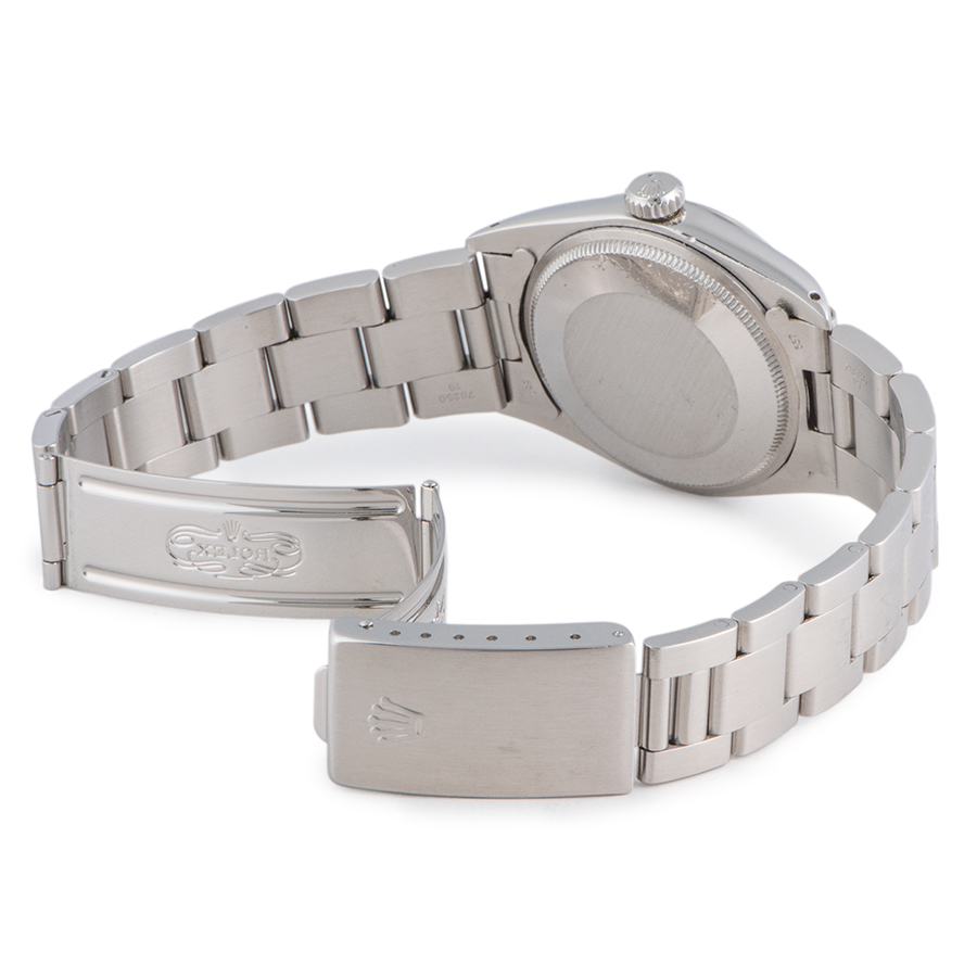 | 商品説明 | ☆シンプルで使いやすいパーペチュアルデイトが入荷致しました。 ブルーダイアルが経年により劣化し、グレーっぽく見えており、アンティークの良い雰囲気が楽しめる1本です。 ※外装仕上げを行っていますが、ケースサイド9時方向に着用時目立たない程度の小さな打ち傷があります。 針に経年劣化による、クスミが御座います。 その他の箇所に目立つ大きな傷や致命的なダメージはなくコンディションは良好です。 |