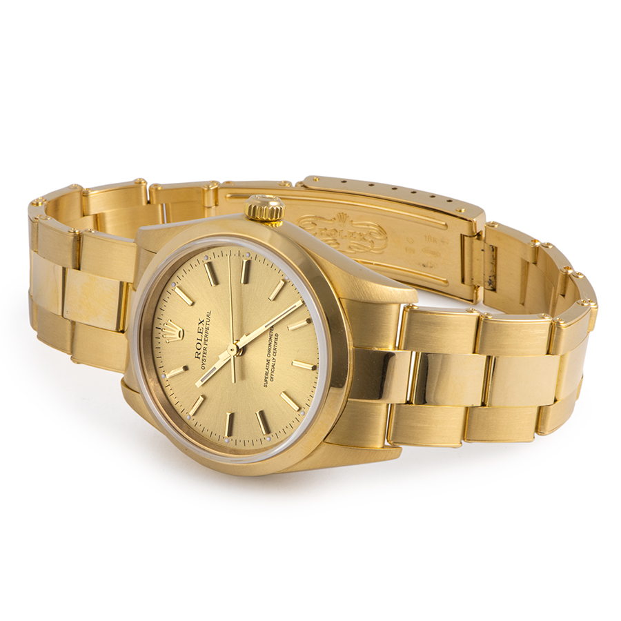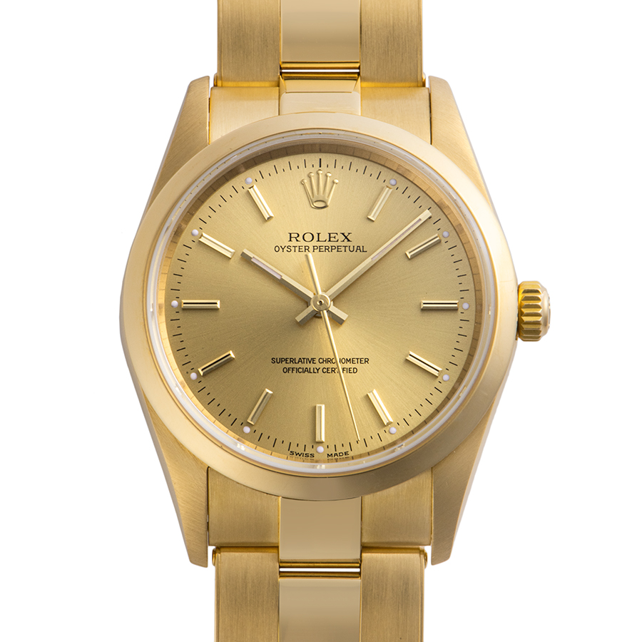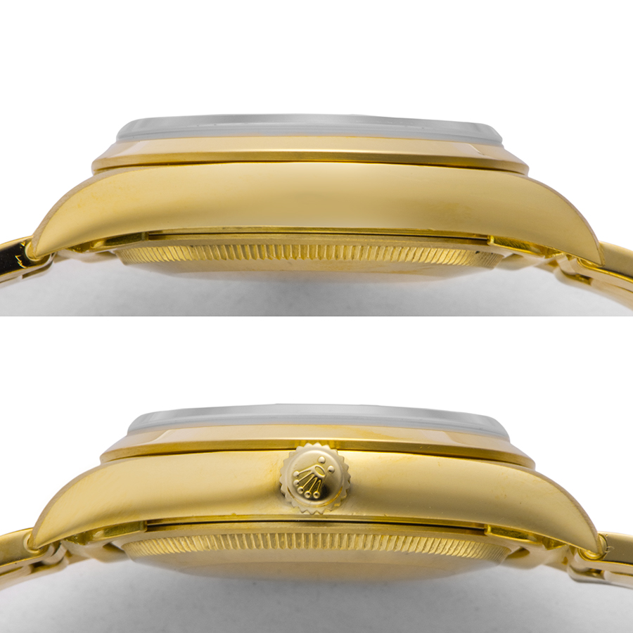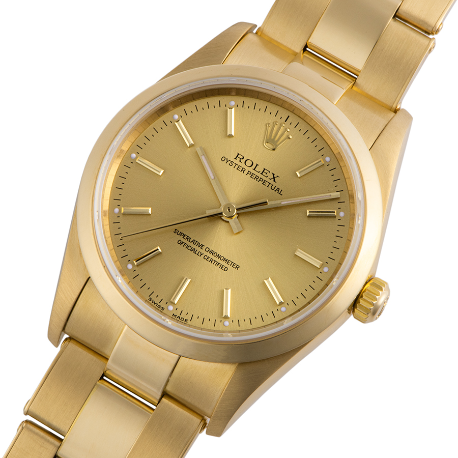 | 商品説明 | ☆YG無垢のオイスターパーペチュアル、リベットブレスもしっかりとしたモデルです。 ※外装仕上げ済みで、わずかに拭き傷程度はありますが、、目立つ大きな傷などはなく大変綺麗な状態です。 リベットブレスの伸びは少なく、大変良いコンディションを保っております。 |